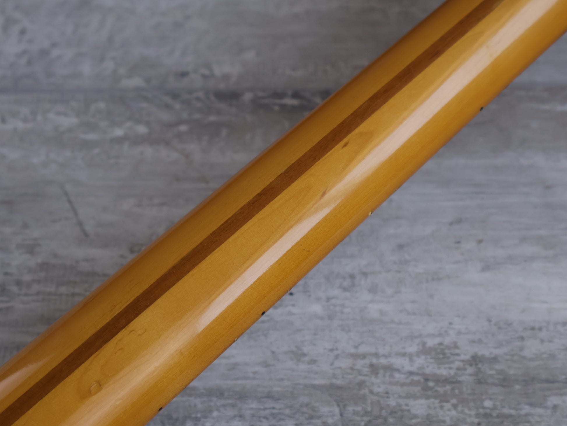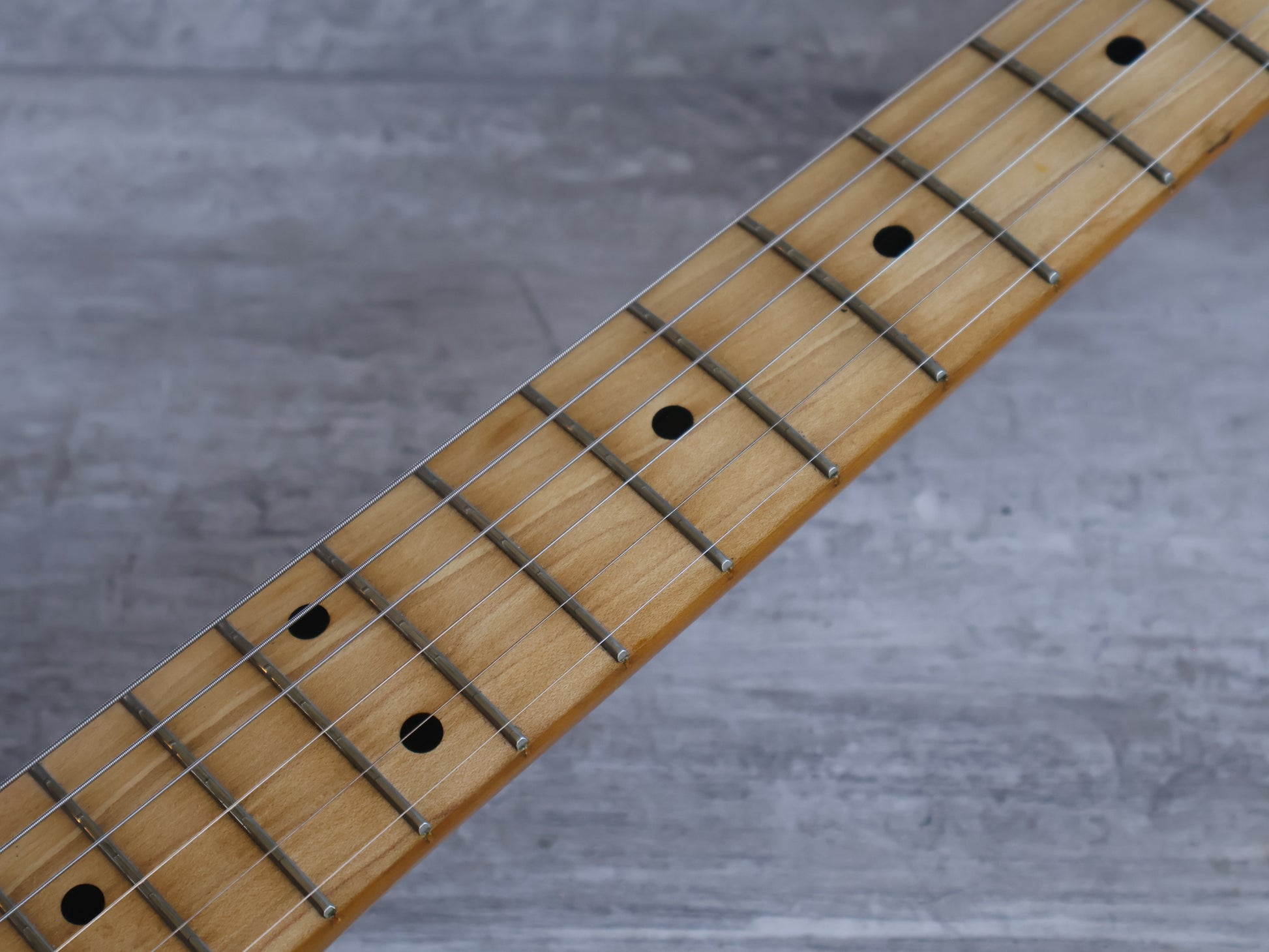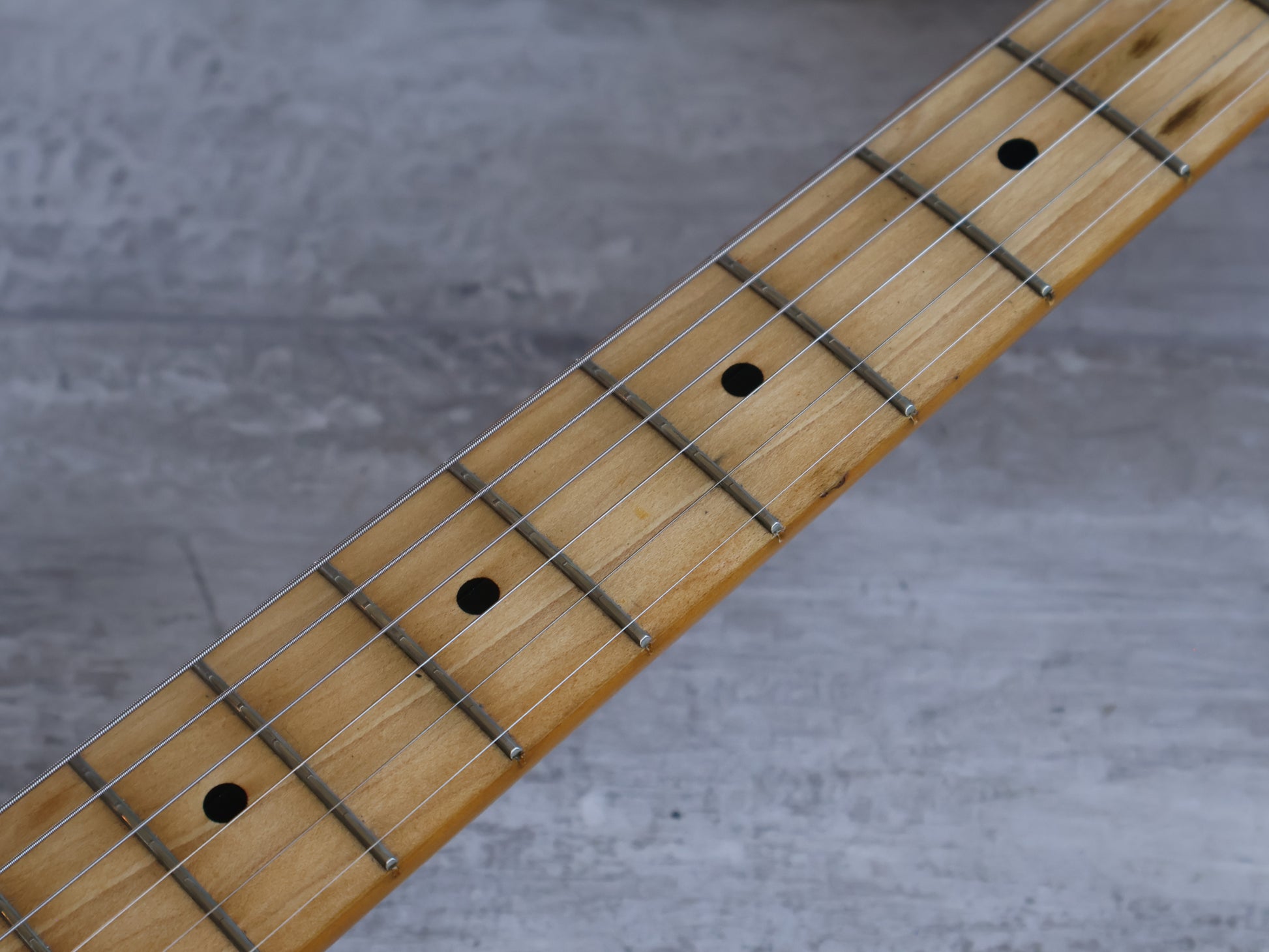 Good vintage cosmetic condition with basic wear and tear as pictured. Given a full professional setup and service prior to listing, the hardware has some light patina and the plastics have faded, the neck is straight with an adjustable truss and the frets are shiny with some light pitting. The pickguard has been slotted slightly by the previous owner to allow for truss access without removing the neck.