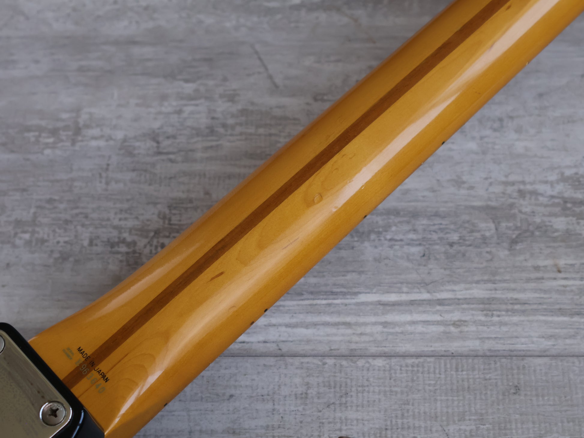 Made by the Fujigen factory as part of the acclaimed "E Series" of guitars from the mid-late 1980's, the ST54-85LS was Fender Japan's unofficial Eric Clapton model Stratocaster with factory active Lace Sensor pickups. Black finish on an alder body with a '54 soft V profile maple neck (7.25" radius, 43mm nut), weighs 3.5kg's. Loaded with the factory fitted Fender Lace Sensor single coil pickups controlled by a 5-way selector, active mid boost circuit plus a volume and tone control. Looks to be all original.
