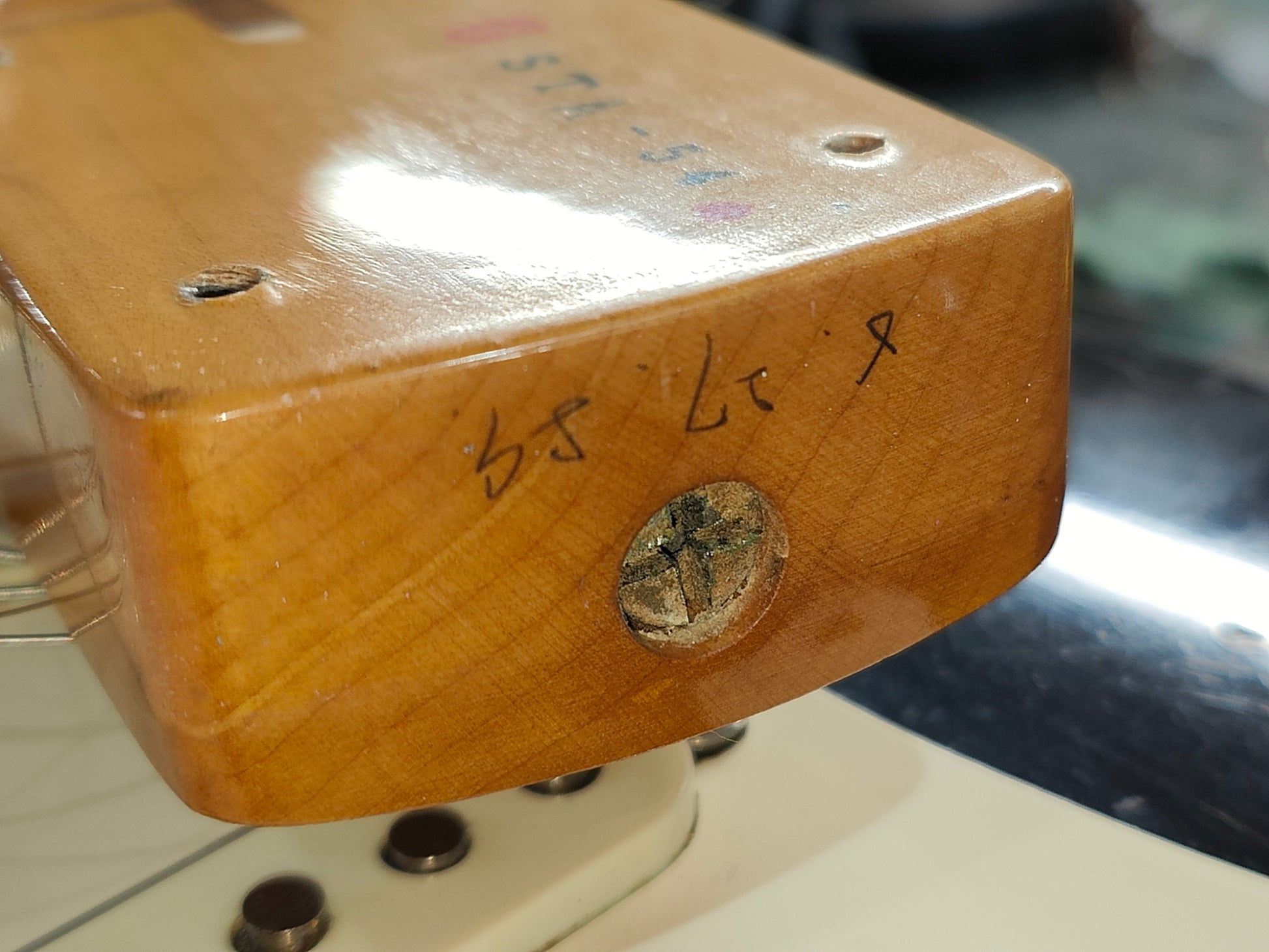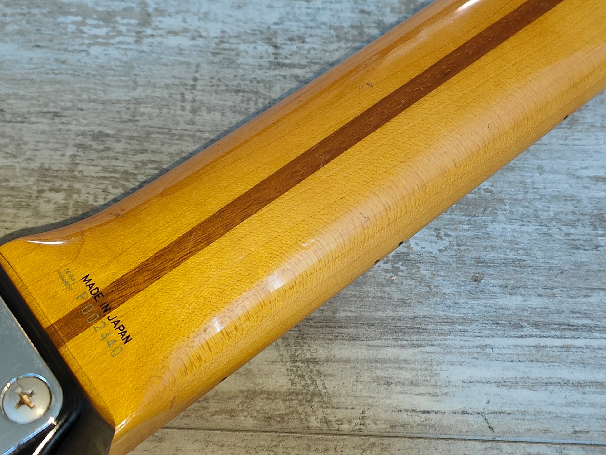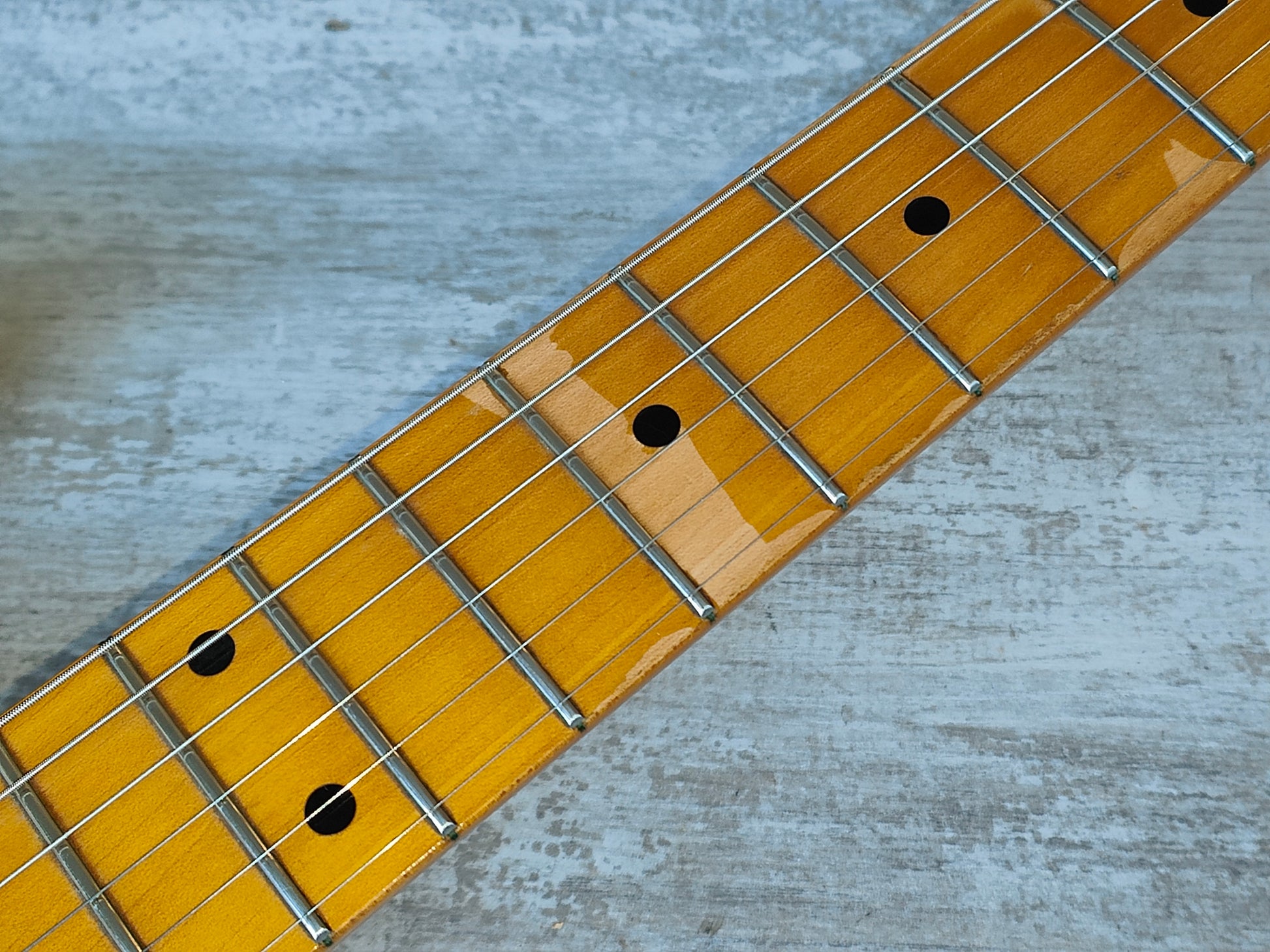 Plenty of wear and tear on this one from years of use but no breaks or repairs and it's a great player. There's some nitro burn where it looks to have been touched up at some point and some light sticker tan, the neck has a few small bits of missing lacquer on the fretboard but nothing that impacts playability. Received a full professional setup and service prior to listing, the truss works as it should and the neck is straight. The frets have some light pitting but play well, looks like it may have been refretted at some point previously.