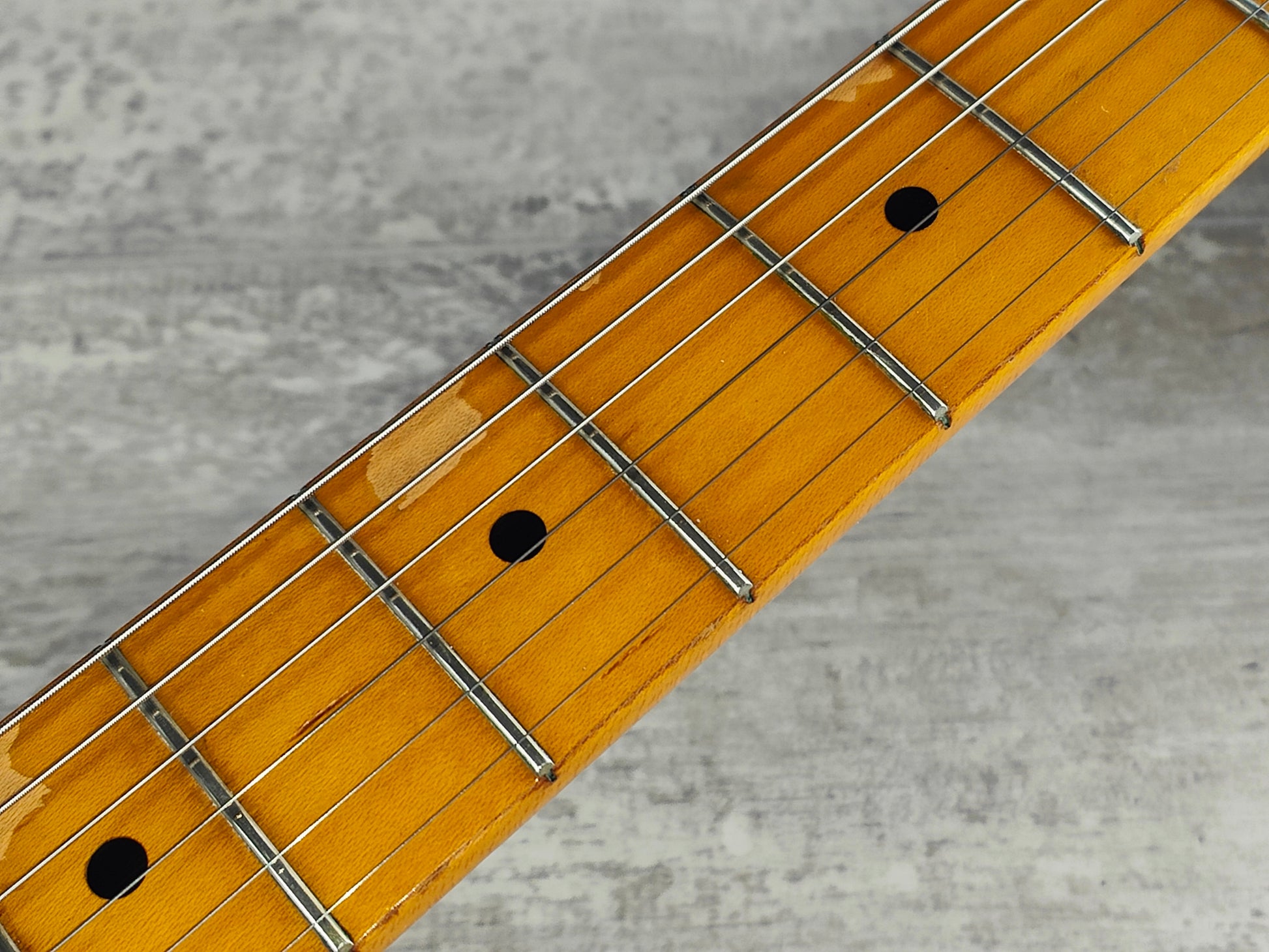 Given a basic setup and service prior to listing including a fret polish and truss adjustment, there's some light pitting in the frets but they still play smooth and the straight neck plays well with a nice low action.