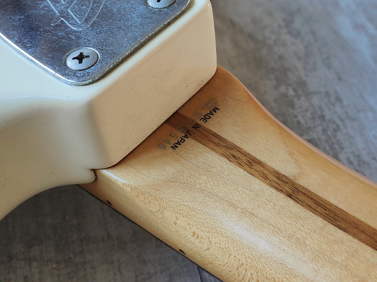 Loaded with the original Fender Japan tuners, Fender Japan alnico single coils and the original bridge system, it's a very nice players vintage guitar as pictured with some checking to the finish but no repairs or notable damage. The neck is straight and the truss works as it should, the frets were polished and given a light level as part of a full professional setup and service prior to listing.