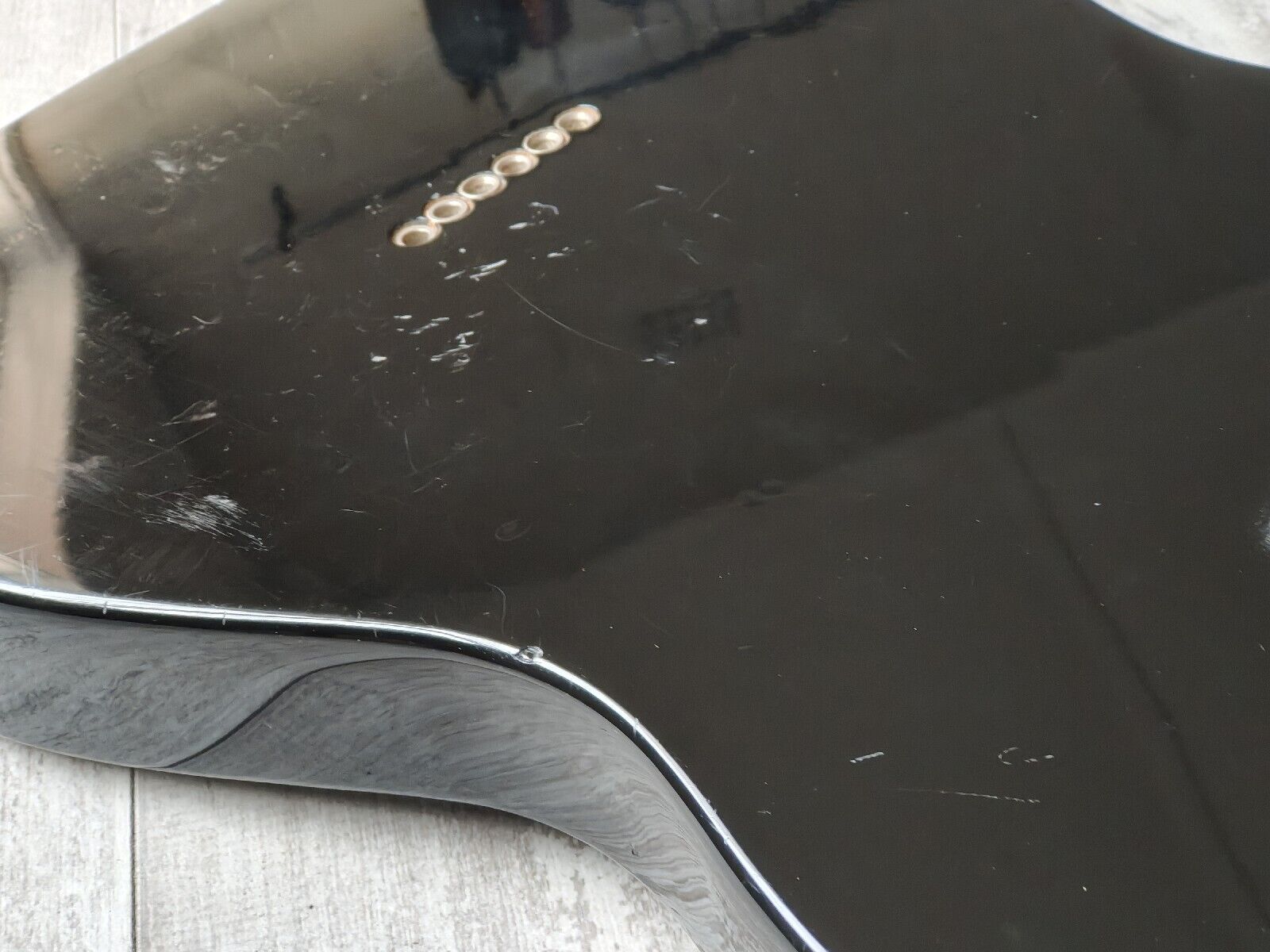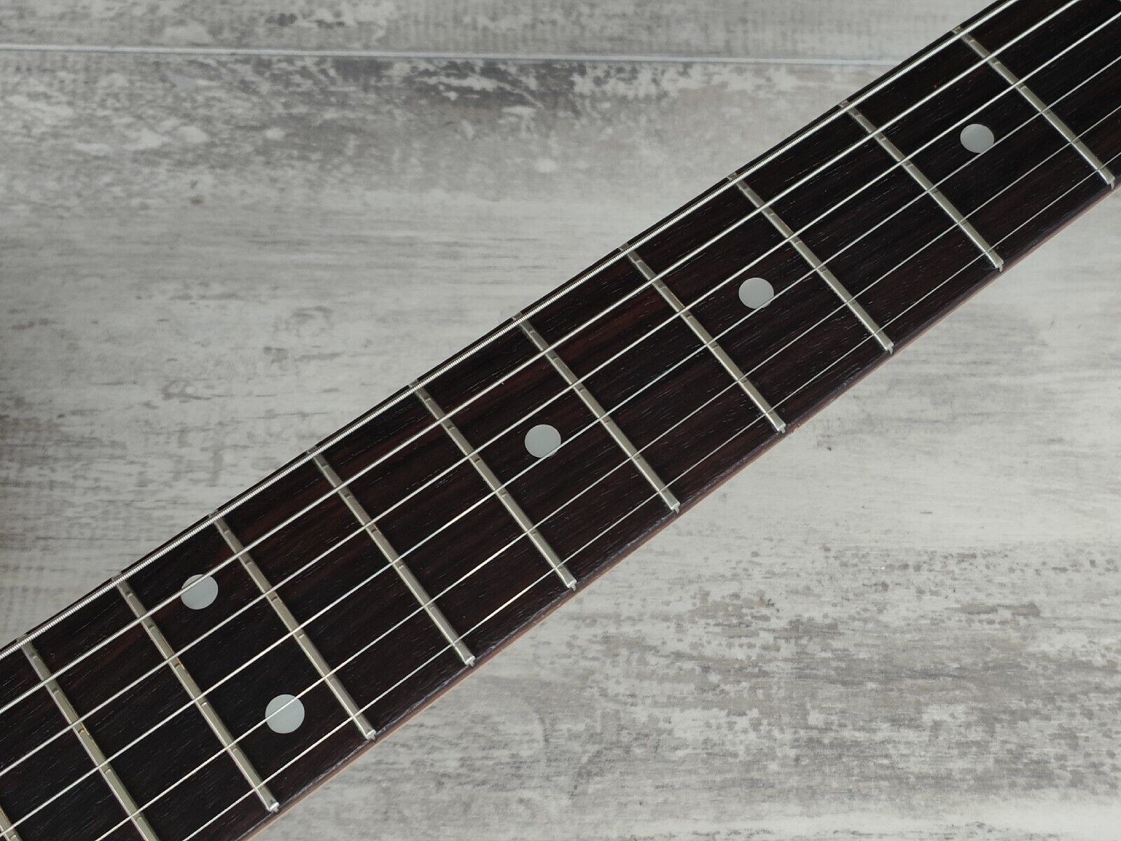 Reasonably well used condition with plenty of signs of wear and tear as pictured. The neck is straight and the truss adjusts well, the frets have some wear but still have plenty of life left and are shiny/smooth. The nut has a small cosmetic chip that doesn't affect tuning/string security.