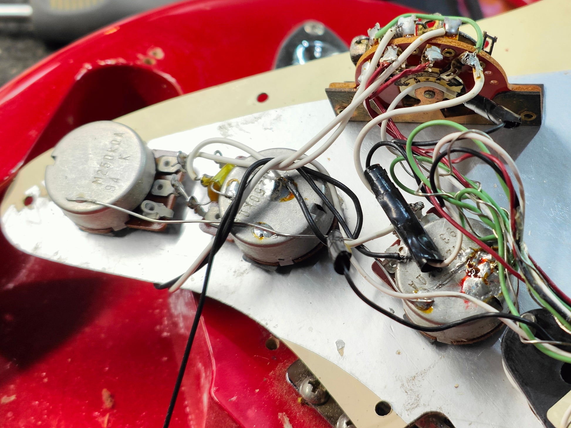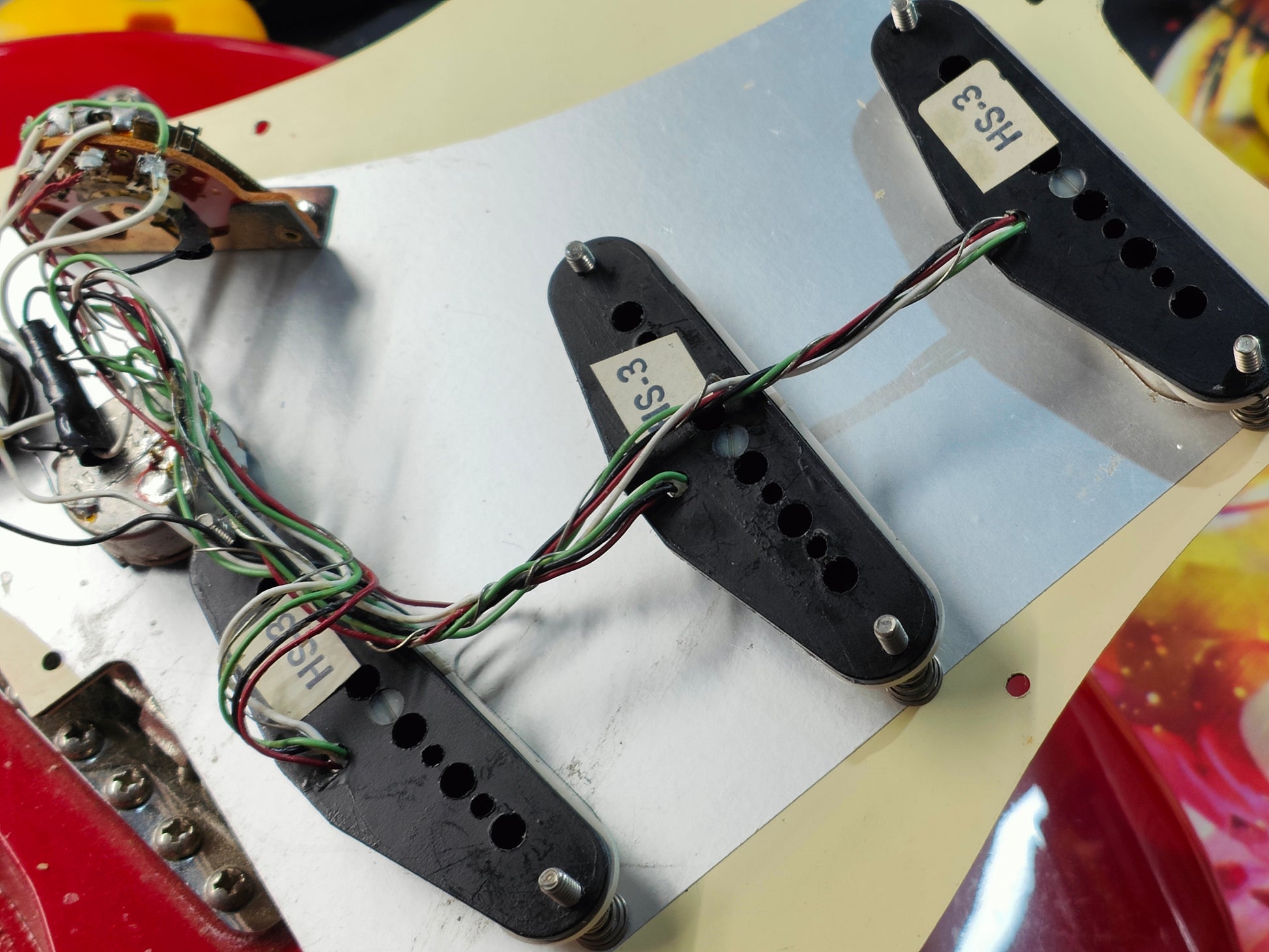 Basswood body wearing a rare and highly desired Torino Red poly finish bolted to a maple neck with a 21 fret fingerboard, it weighs 3.5kg's. Loaded with a set of vintage Dimarzio HS-3 single coil pickups and the original Japanese pots, the hardware appears all original as pictured and is working perfectly.