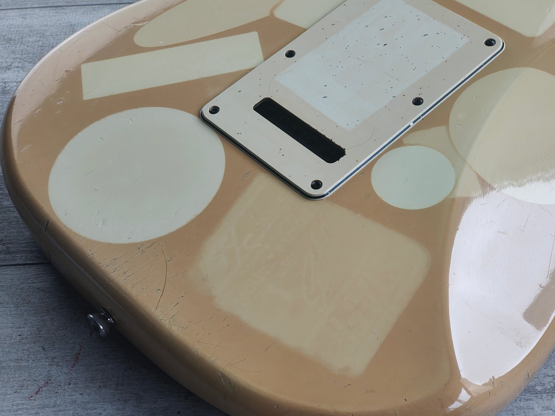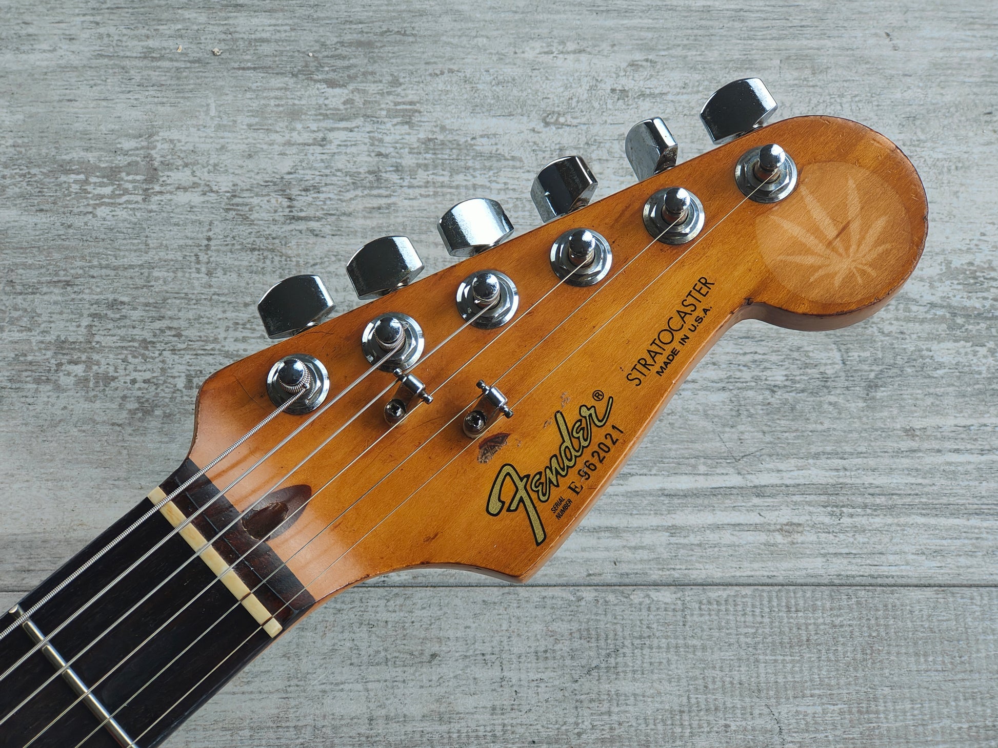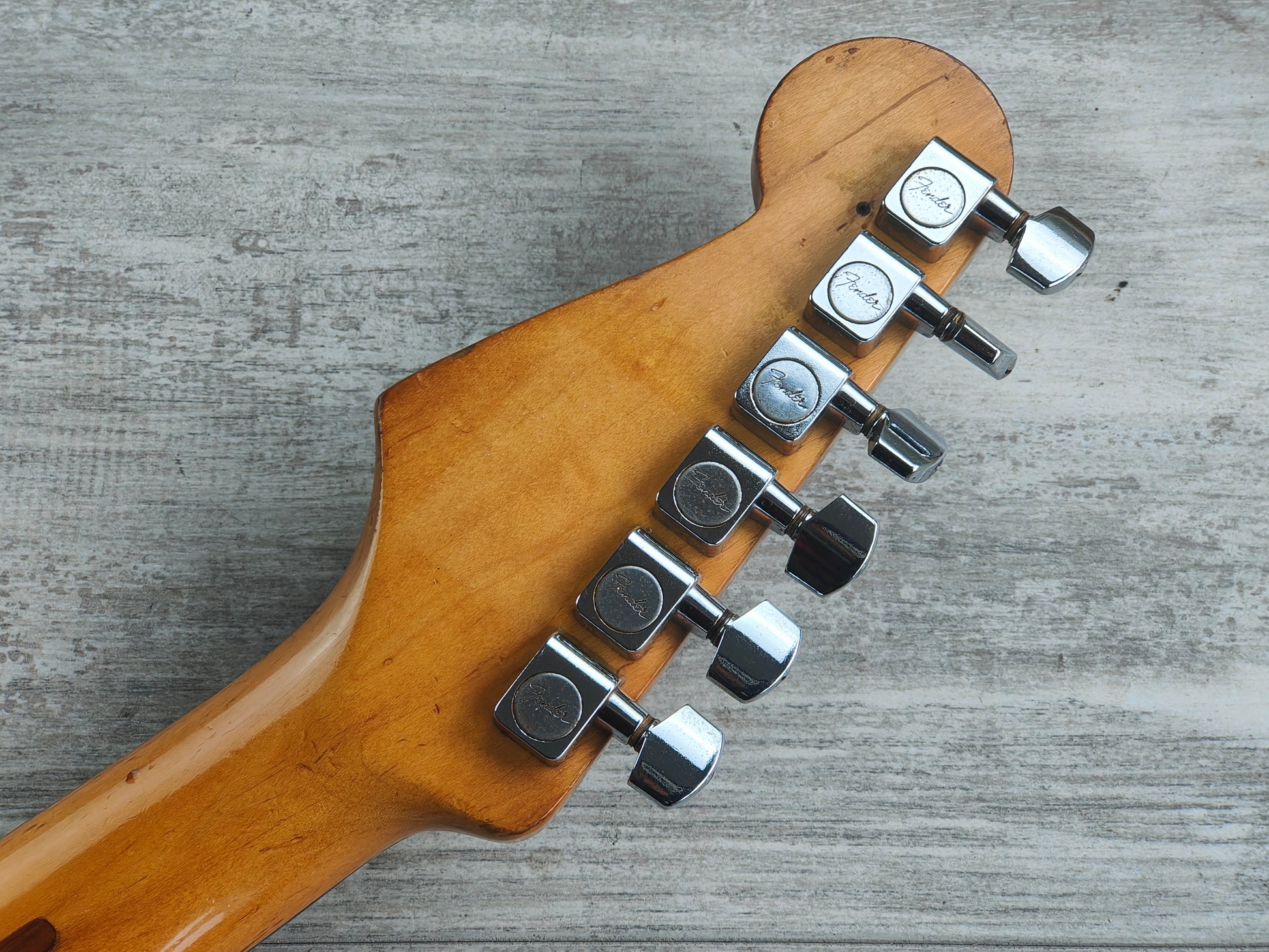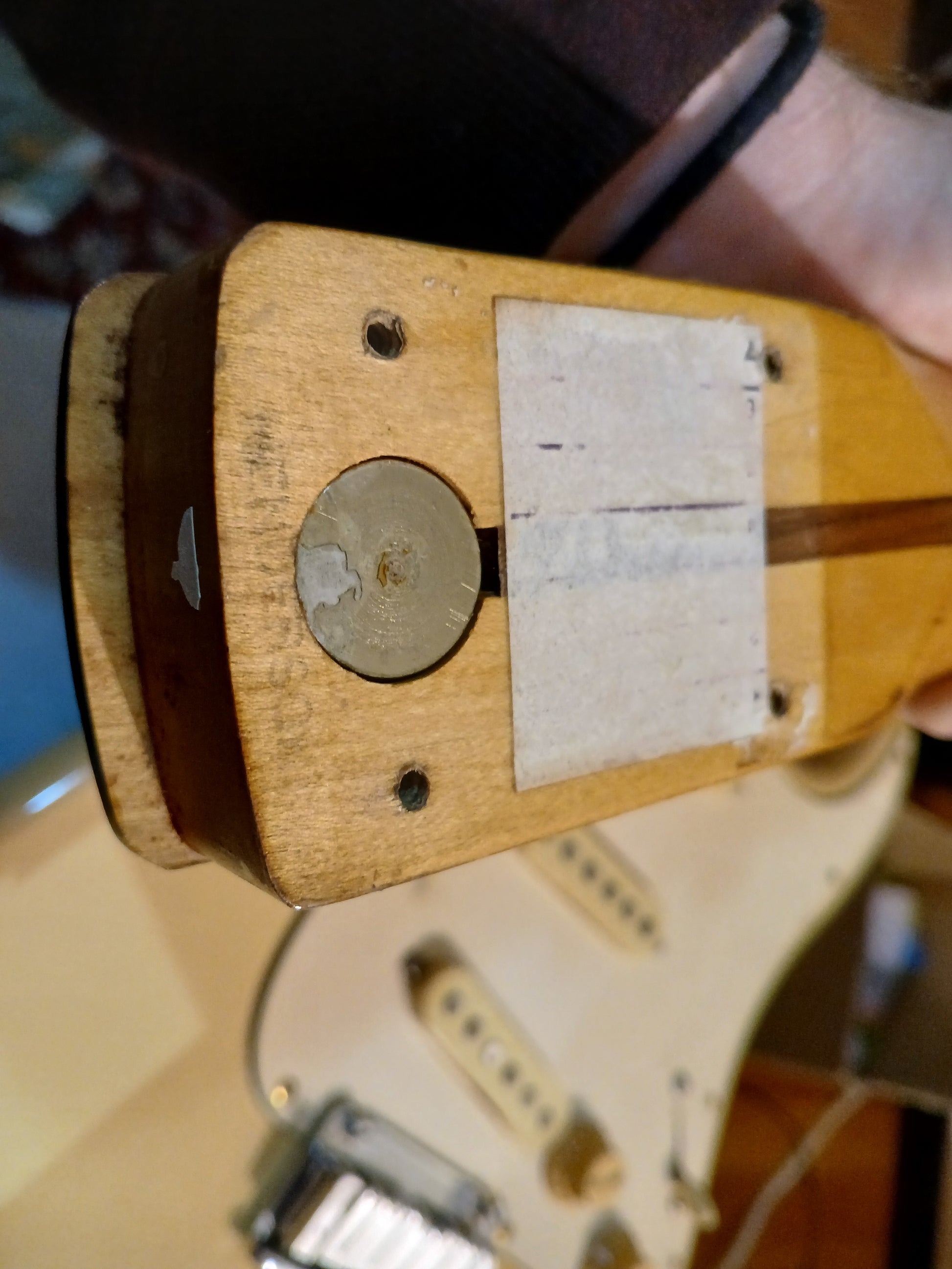 A classic Fender American Standard Stratocaster built in the USA in 1989. Two piece alder body with a glossy aged white urethane finish (with plenty of sticker tan, including some very obvious ones..) bolted to a maple neck with a modern C profile and 22 fret rosewood fingerboard (9.5" radius, 648mm scale length), it weighs 3.6kg's. Looks to be all original as pictured with the exception of a replacement bridge.