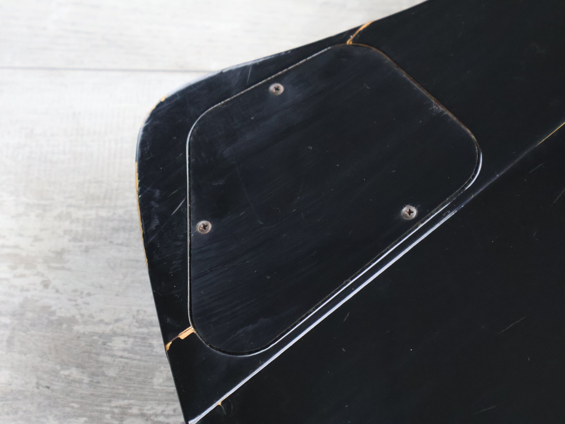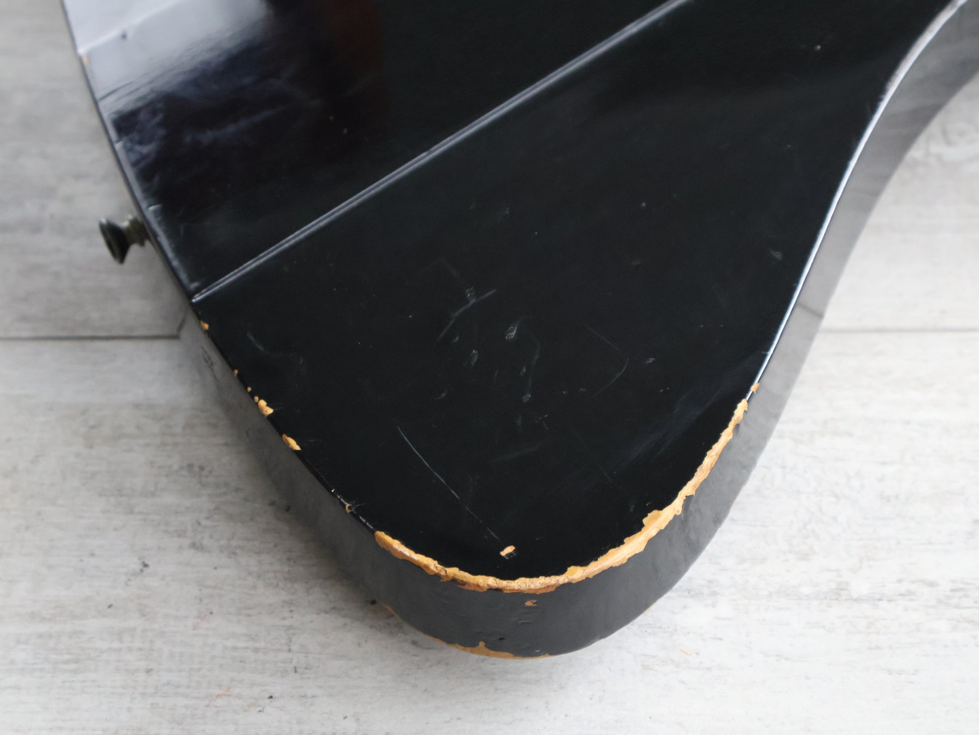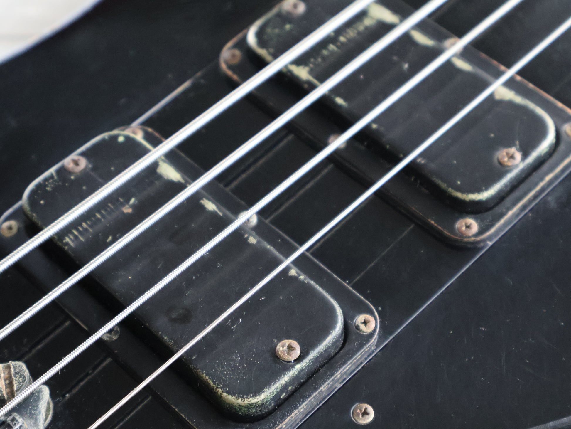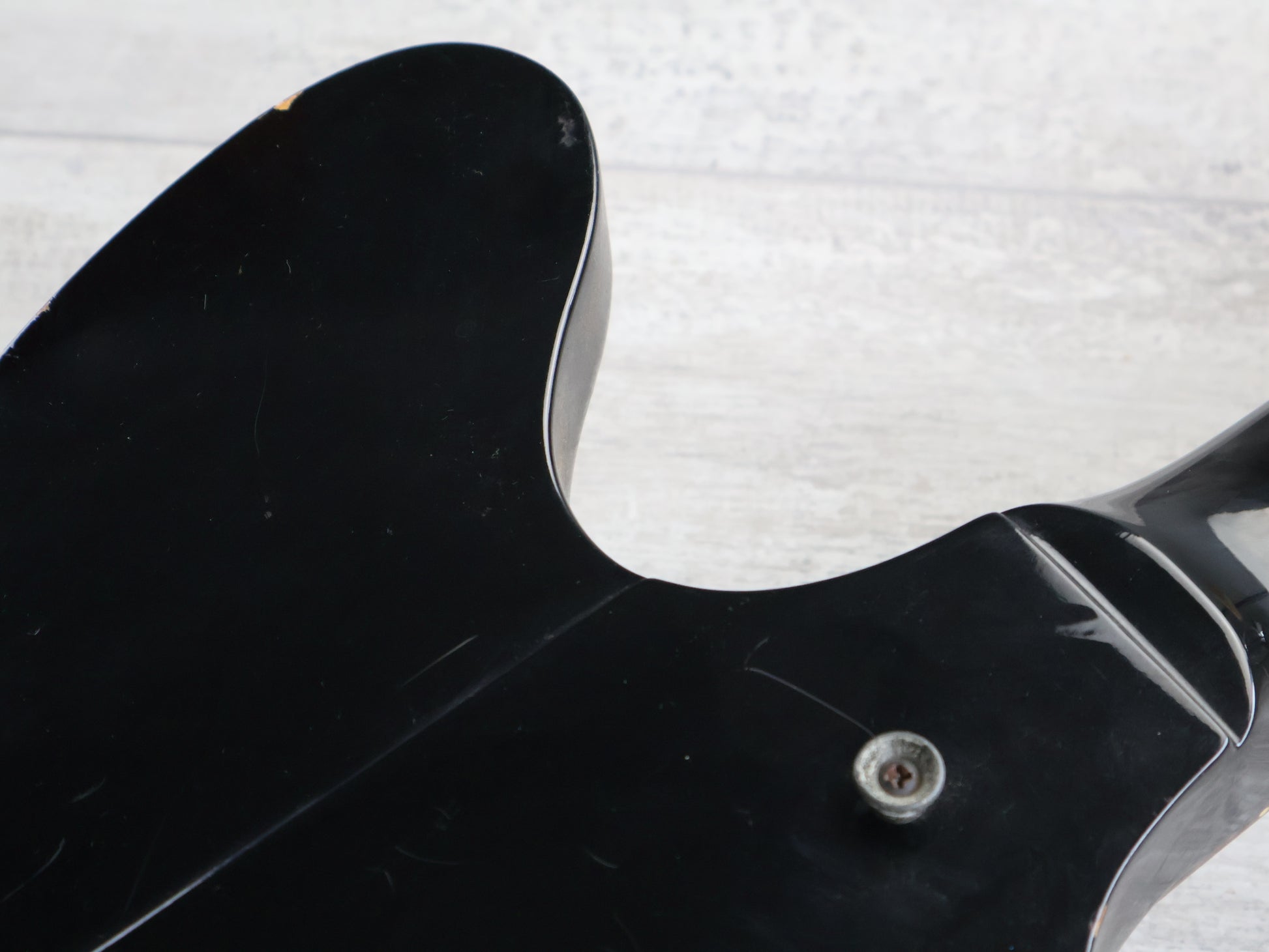 Made by the Fujigen factory in early-1989, the TB-70 was Greco's take on the Thunderbird with a gothic black on black aesthetic. Basswood body set to a three-piece maple neck with a 20 fret rosewood fingerboard (43mm nut width, 12" radius, 34" scale length), it weighs just over 4kg's. Loaded with the original PU-TB9 pickups and three-point bridge system, this one appears to be all stock except for some replacement knobs.
