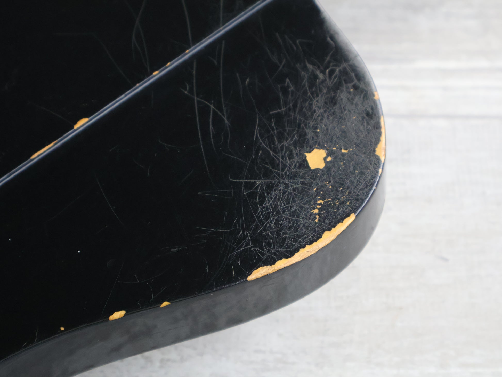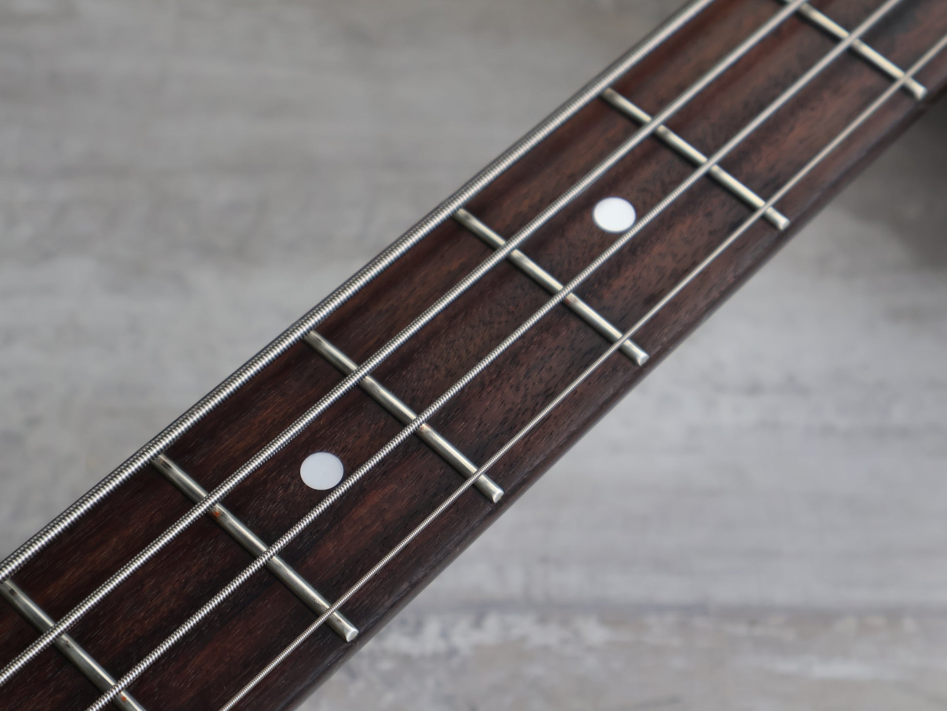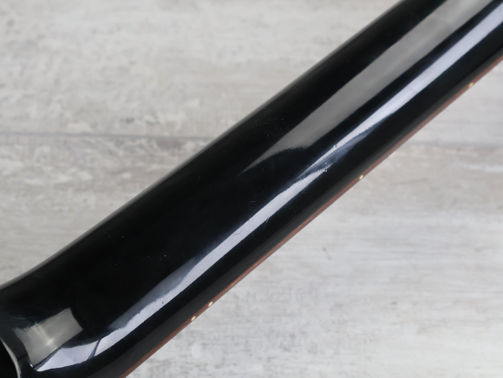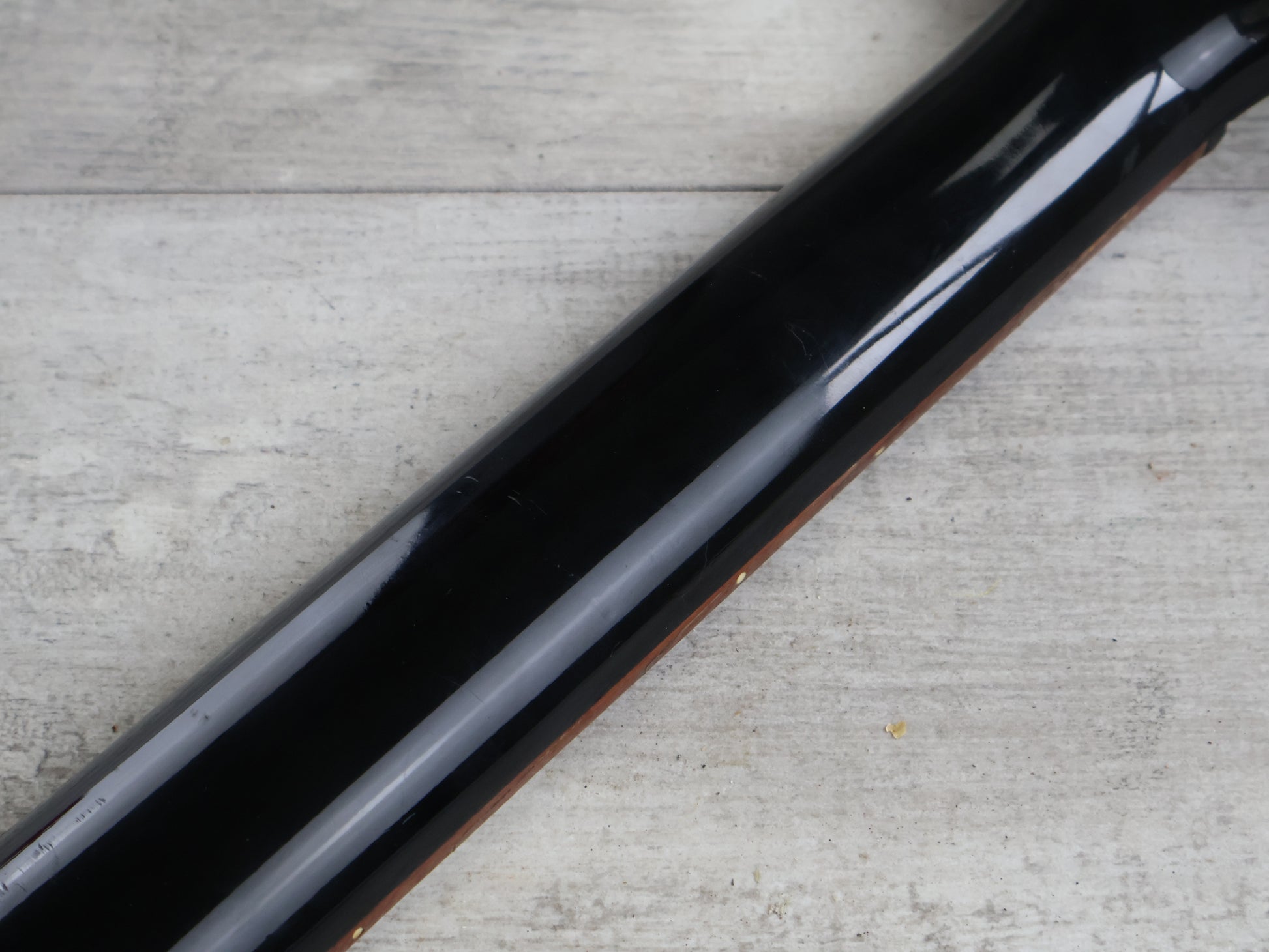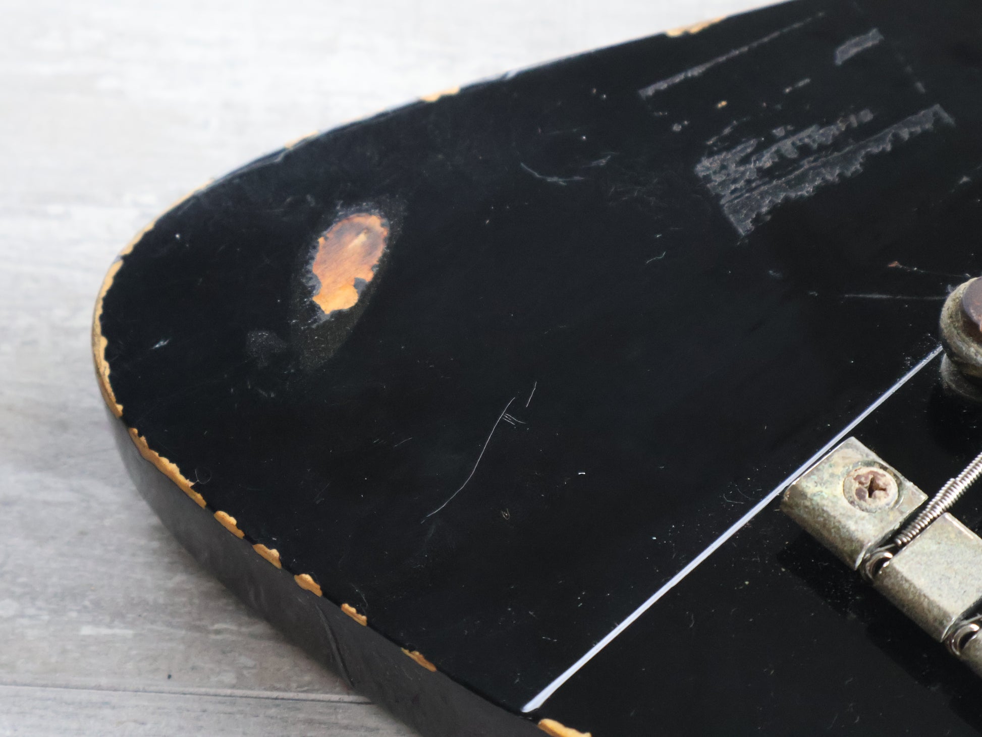 Made by the Fujigen factory in early-1989, the TB-70 was Greco's take on the Thunderbird with a gothic black on black aesthetic. Basswood body set to a three-piece maple neck with a 20 fret rosewood fingerboard (43mm nut width, 12" radius, 34" scale length), it weighs just over 4kg's. Loaded with the original PU-TB9 pickups and three-point bridge system, this one appears to be all stock except for some replacement knobs.