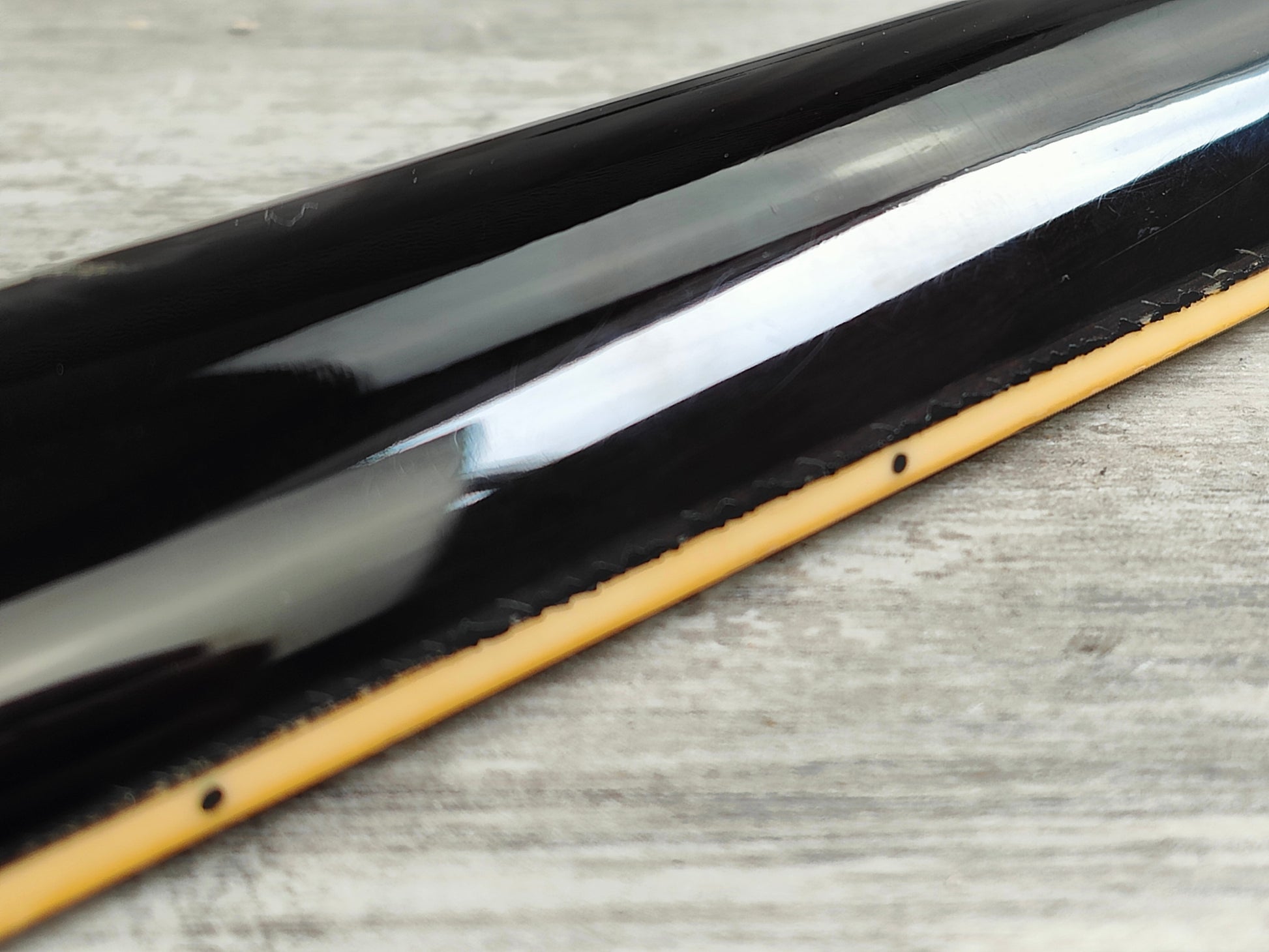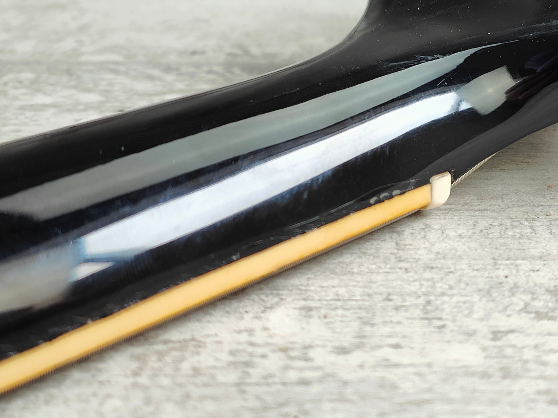 Received a full professional setup and service prior to listing including a fretboard oil, fret polish and truss adjustment. The frets have some light pitting but still play and bend smoothly and the neck is straight. There was some light separation of the binding along the top of the neck which led to some paint chipping as pictured, we had the area repaired professionally so it's smooth to touch and structurally solid even through it's still slightly visible.