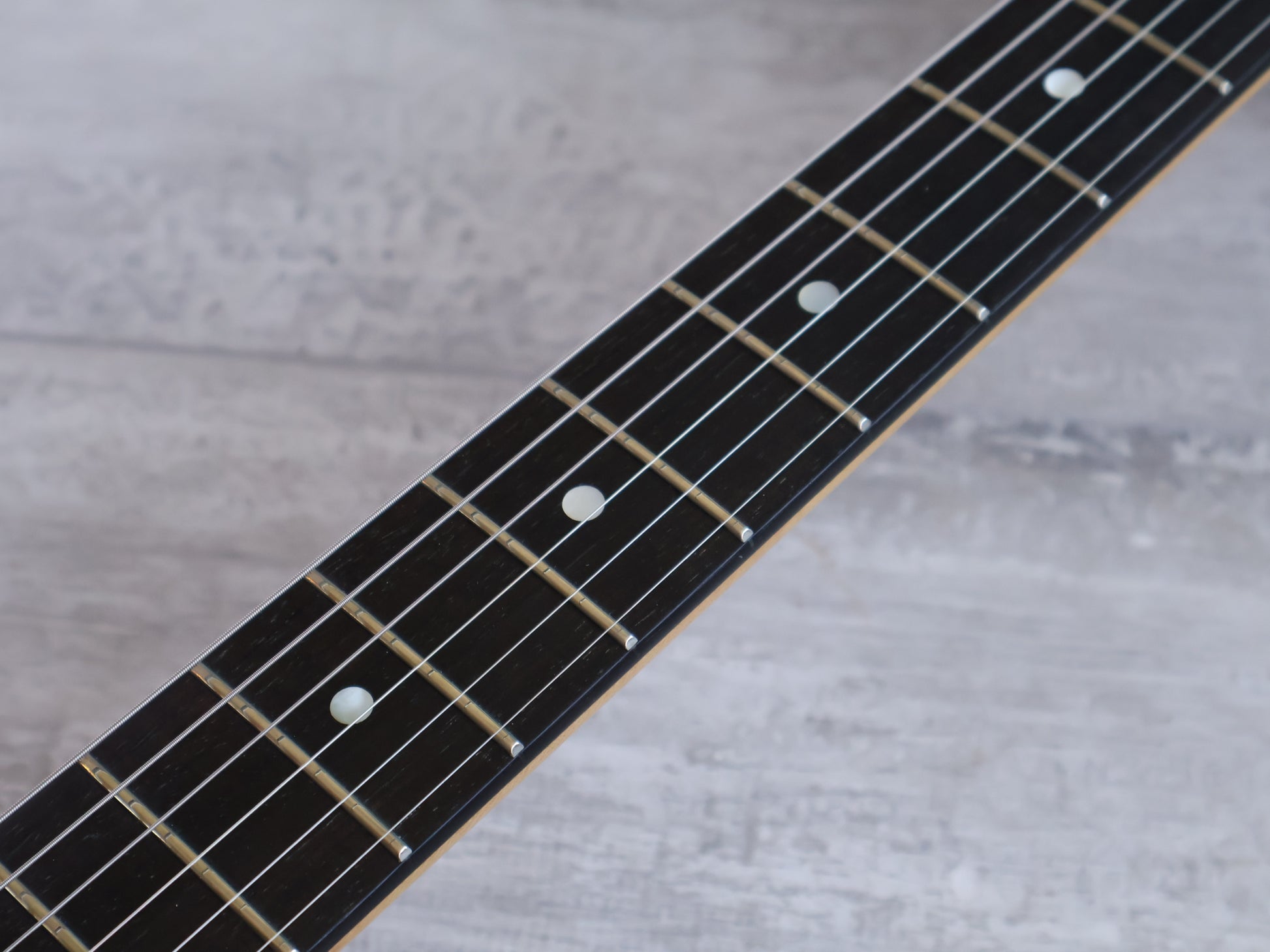 Good overall condition with a few small bumps and bruises but no breaks or repairs, received a full professional setup and service prior to listing. The neck is straight and the frets are shiny and smooth with plenty of life left, the truss works well and adjusts freely.