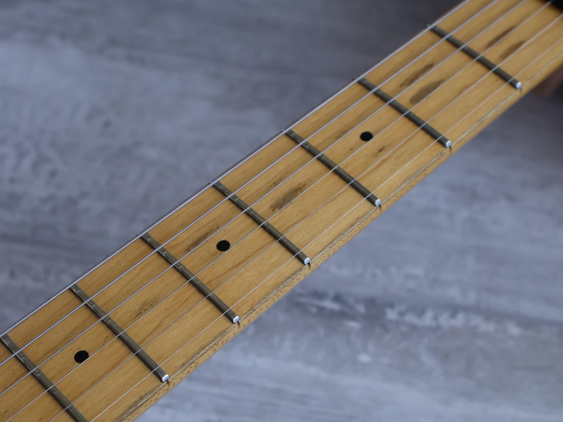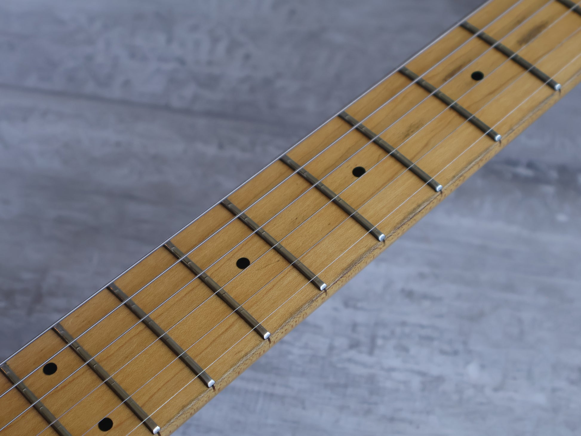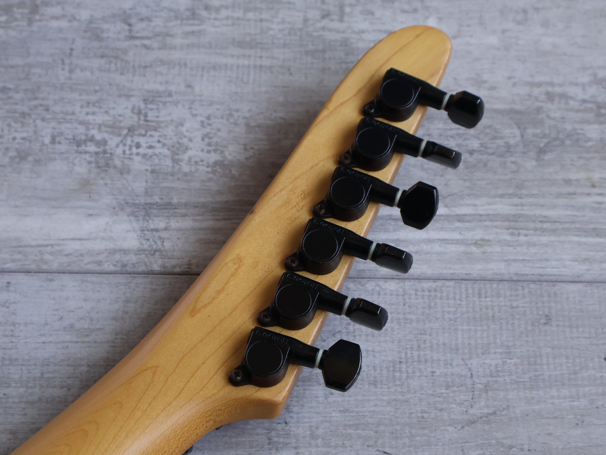 This is a Tak Matsumoto signature model from the late 80's/early 90's with a basswood body and 22 fret maple neck. Dual locking "Rockin' Magic Pro II" Floyd Rose tremolo system and a HSH pickup configuration (3-way toggle with a dummy middle pickup). This one was modded and refinished by a previous owner.