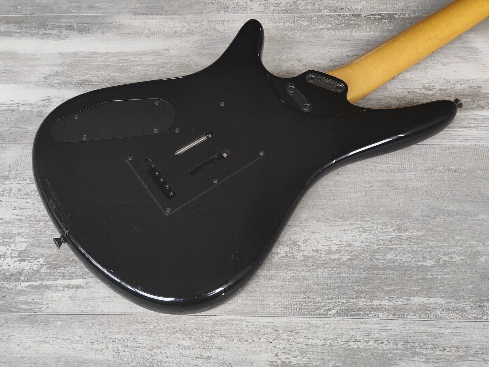 This is a limited edition Tak Matsumoto signature model from the late 80's/early 90's with a basswood body and 22 fret maple neck. Dual locking "Rockin' Magic Pro II" Floyd Rose tremolo system and a HSH pickup configuration with a simple master volume control and 5-way toggle give this some simplicity. Neon purple finish with black background looks really unique.