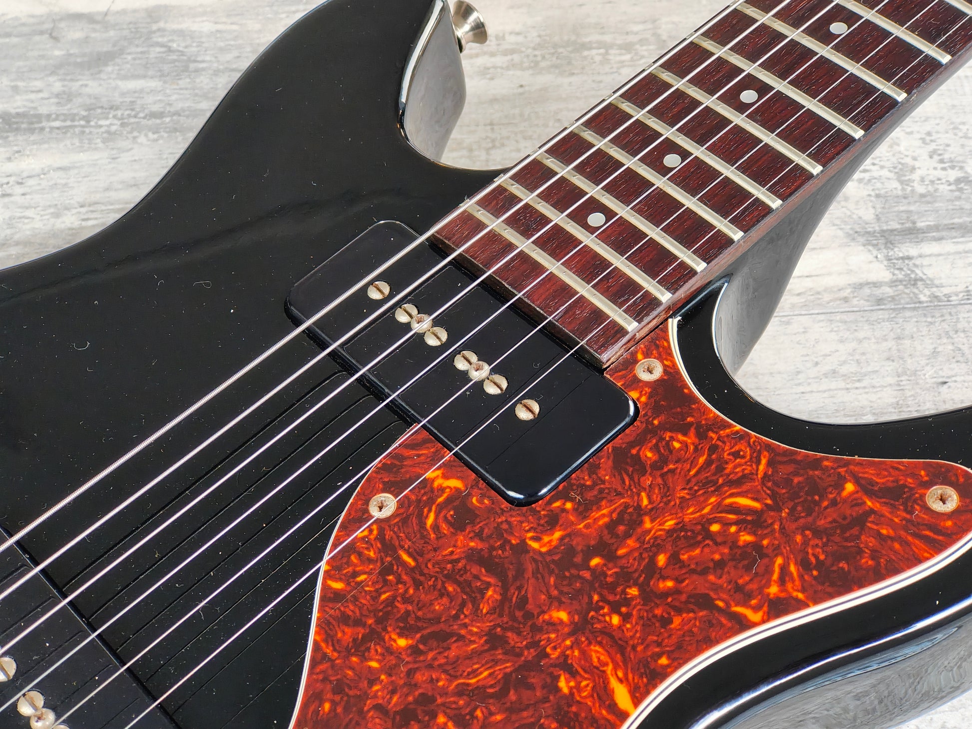 Good vintage condition as pictured with some basic wear and a few small dings, received a restring and basic setup prior to listing. Frets show very light wear but are shiny and clean and the neck is straight with a fully functional truss.