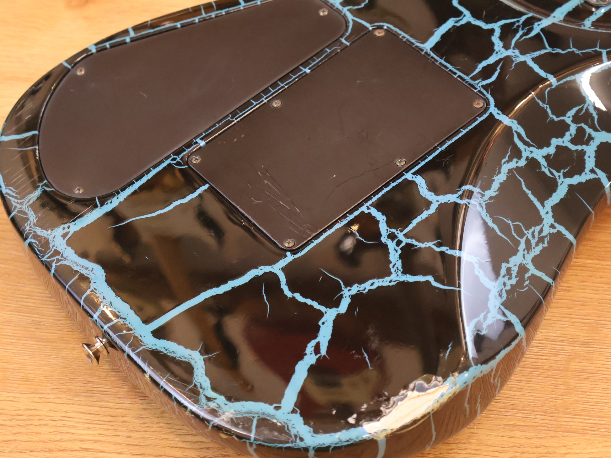 Made in Japan in 1990, the DK-090 features a poplar body with a slim profile rock maple neck, rosewood fingerboard (648mm scale length, 22 frets) and weighs 3.3kg's. Wearing a Japanese exclusive "Blue Crackle" finish, it's loaded with the original Jackson HSS pickups and a Charvel branded licensed Floyd Rose locking tremolo system.