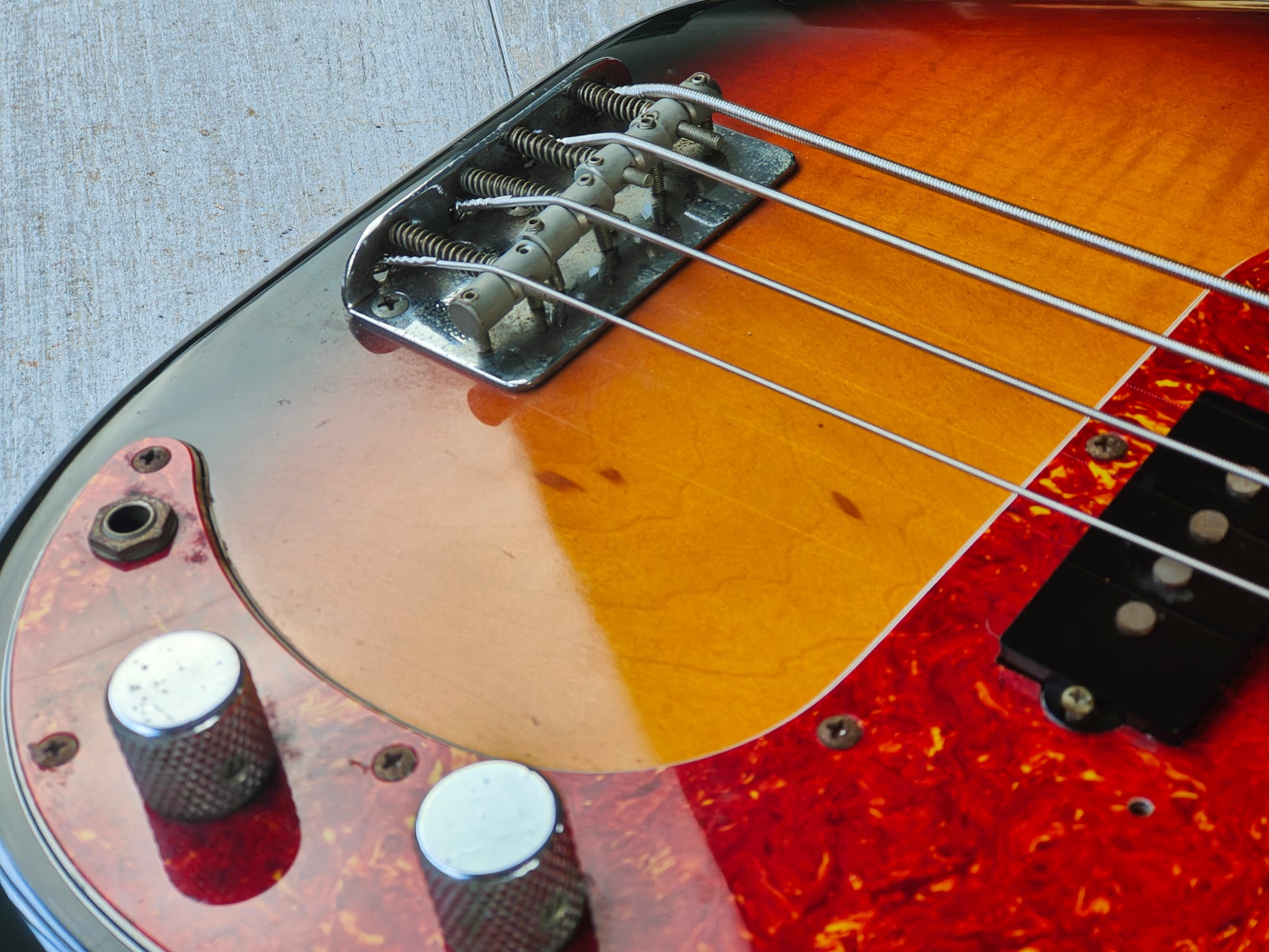 Made by the Fujigen factory in 1990, this is a '62 Reissue Precision Bass sold to the Japanese market by Fender Japan. Basswood body with an oval shape maple neck and rosewood fingerboard (7.25" radius, 42mm nut width), it weighs 4kg's.