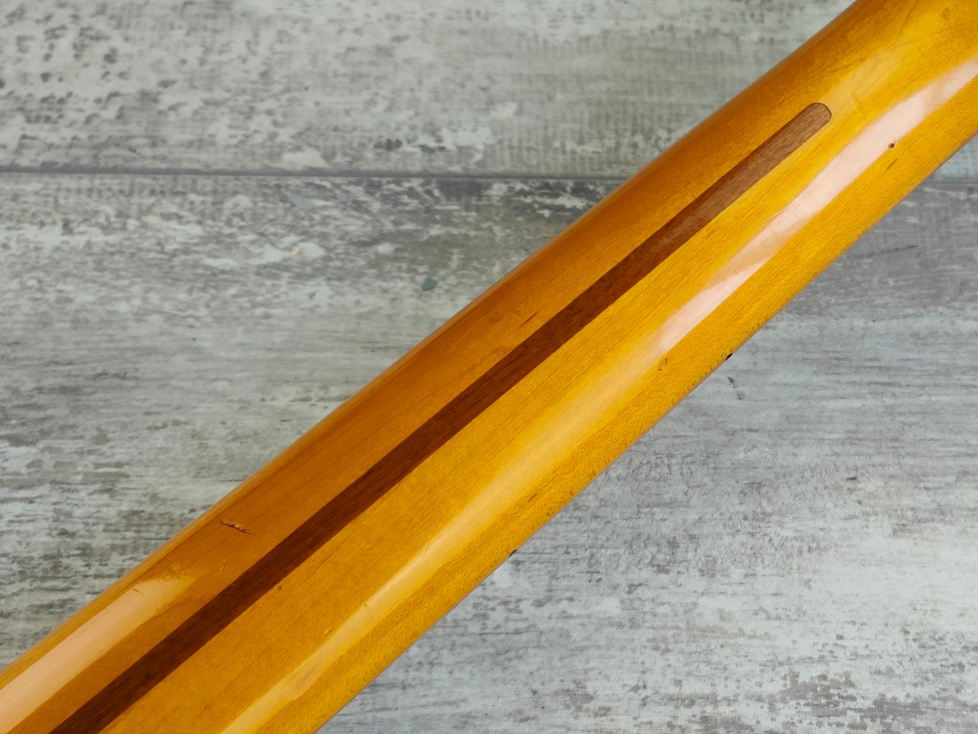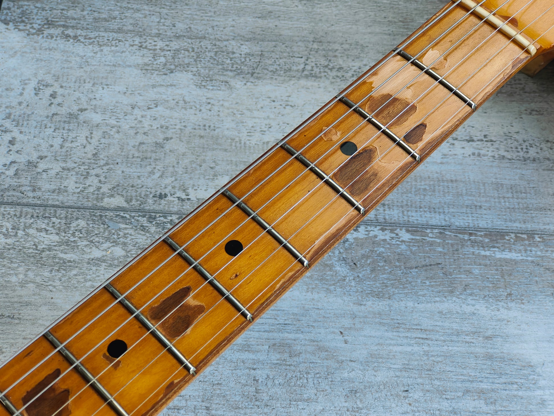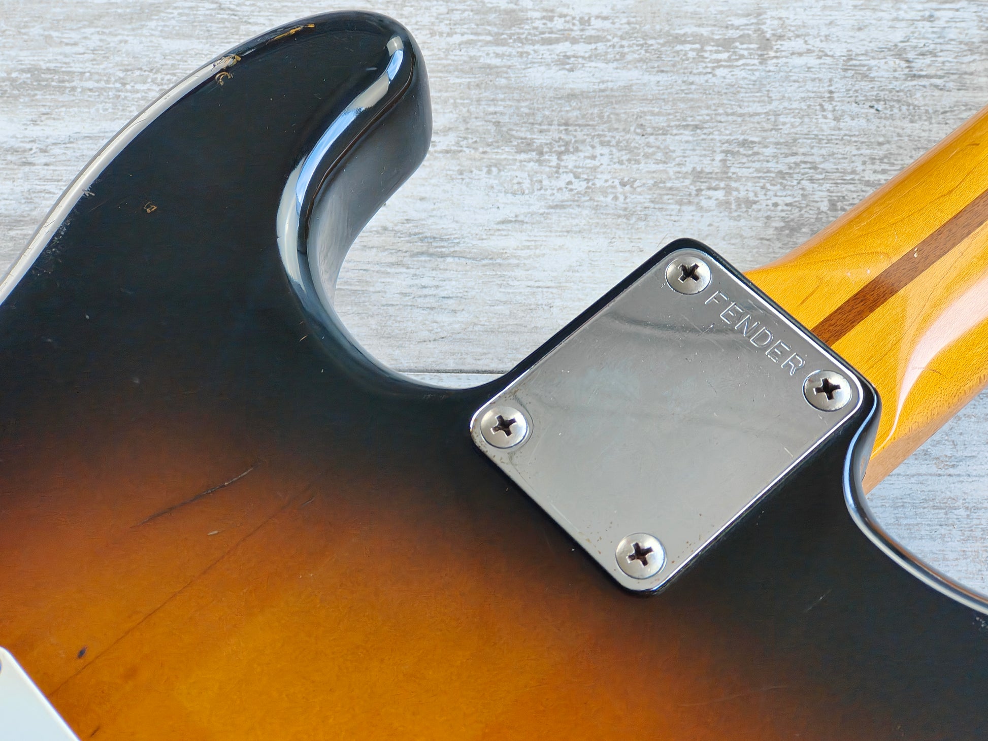 Alder body with a maple neck shaped with the classic '57 slim C neck profile (7.25" radius, 43mm nut, 648mm scale length), it weighs 3.2kg's. Loaded with the original Fender USA ST-VINTAGE pickups in the neck and bridge positions and an unknown neck pickup (stamped SC-A, cloth wire), die-cast bridge, vintage style tuners and Fender stamped saddles.