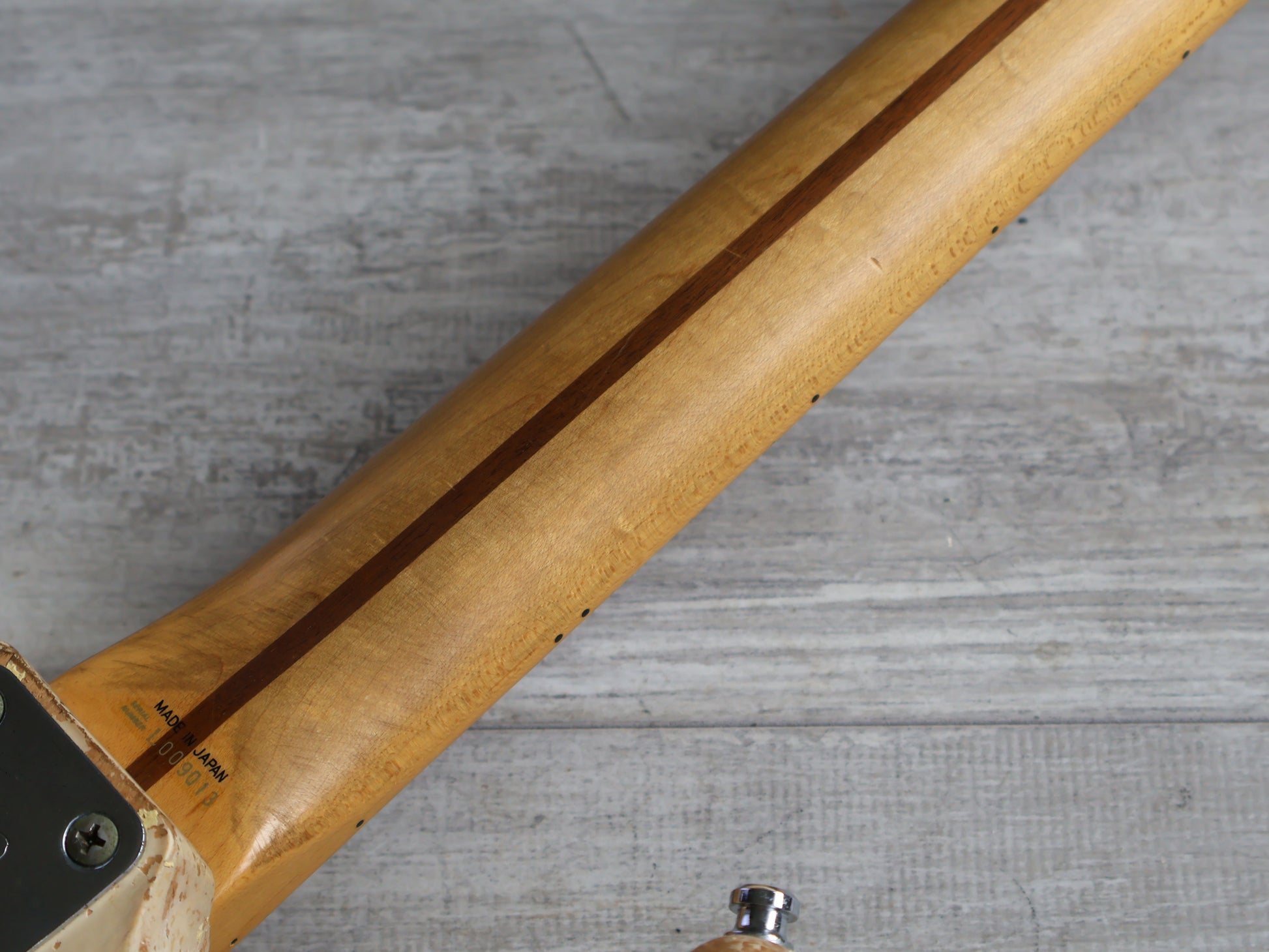 Made by the Fujigen factory in 1990, the ST72-860DSC was the highest end "unofficial" signature model for Yngwie Malmsteen. Designed to his specifications (without explicitly mentioning his name in the catalog), basswood body with a scalloped maple neck (7.25" radius, 21 frets), weighs 3.4kg's. Loaded with an aftermarket HSS pickup configuration with the original bridge and Gotoh tuners.