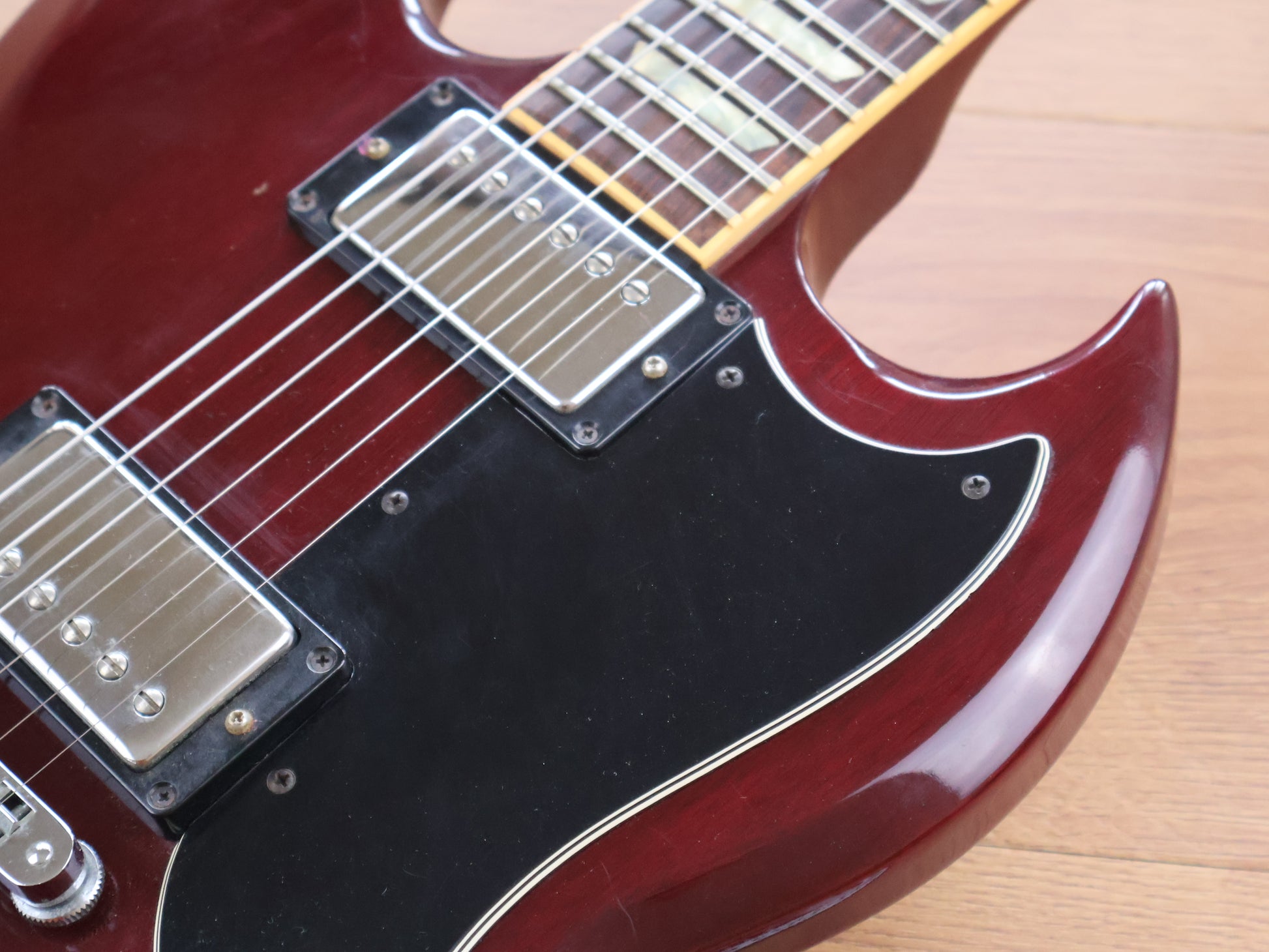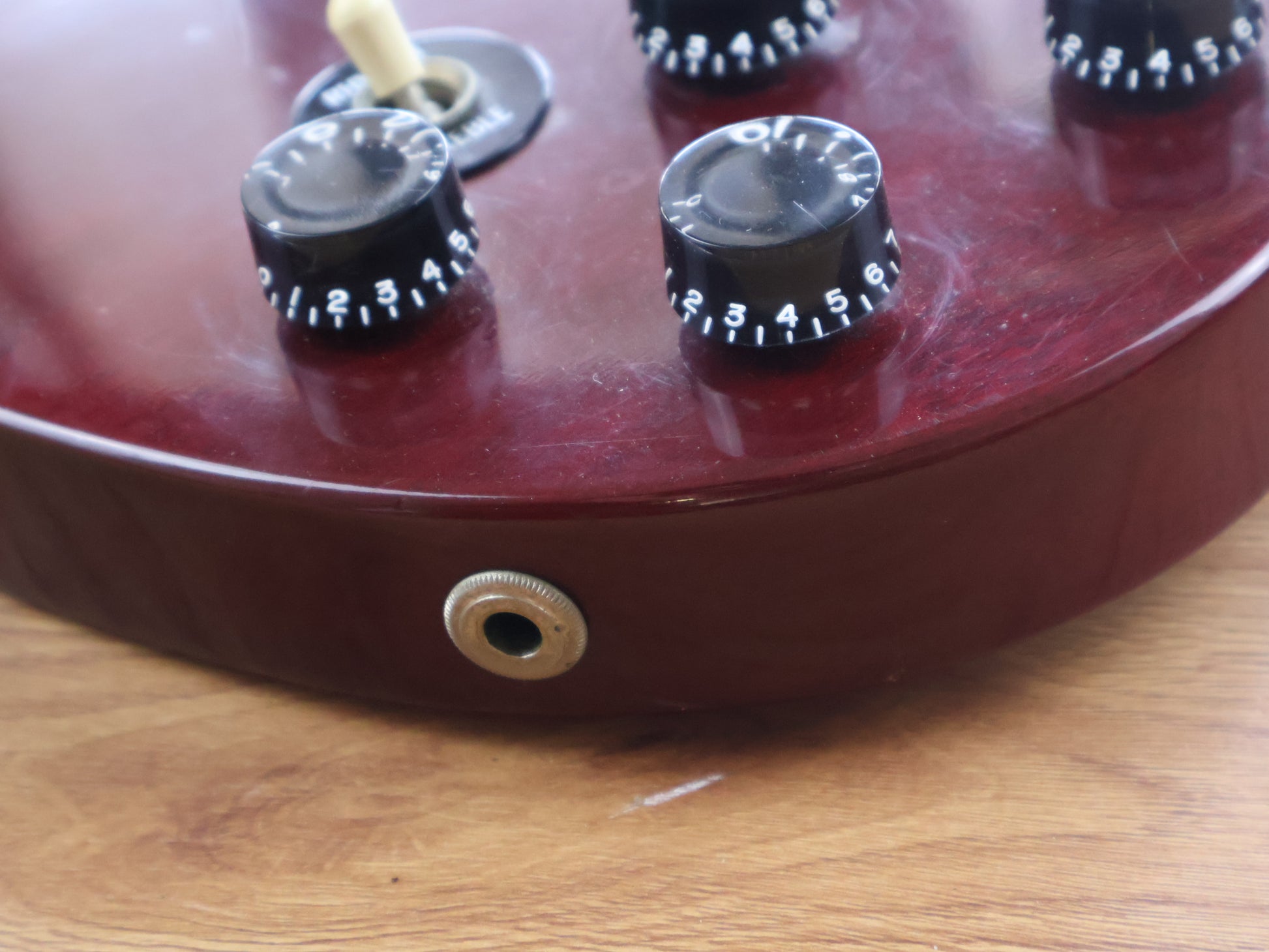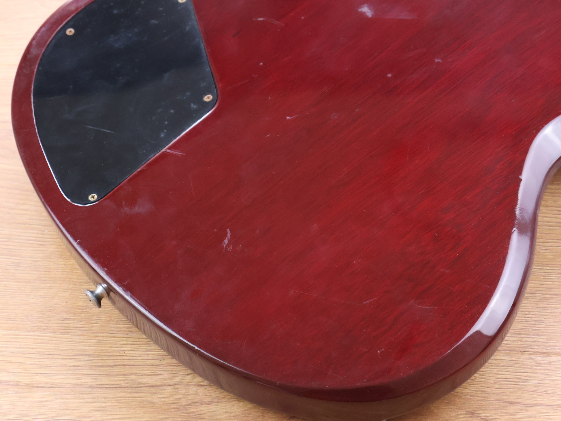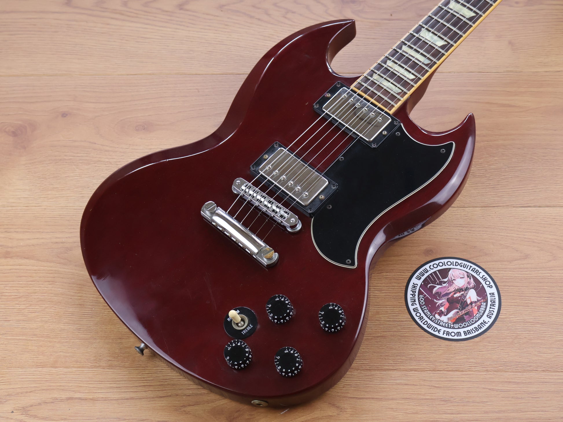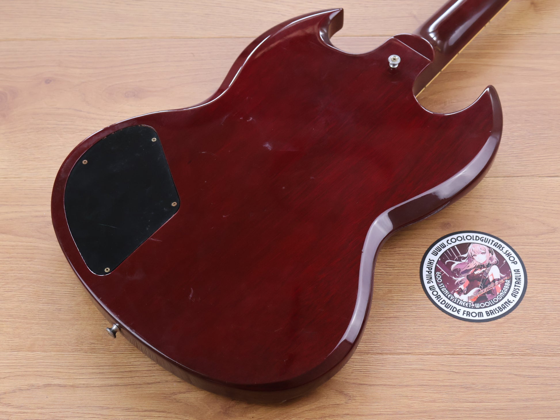 Made in the USA just after the famous "Norlin" era, this 1990 model SG features a seldom seen side-mount jack. Made for only 4 years between 1986-1990, these "small guard" models feature a mahogany body with a slim 60's style mahogany neck and bound rosewood fingerboard. Weighs 3.3kg's.