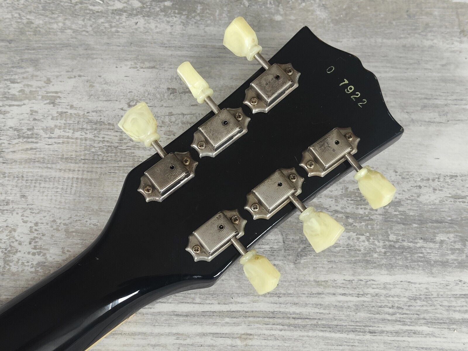 Made by the Fujigen factory in 1990, this is a Kanako Nakayama artist model 60's Greco SG with a nice V profile neck. Mahogany construction with a bound rosewood fingerboard (dot inlays), it weighs 3.3kg's. Looks to be all original with the exception of a brand new Gotoh bridge and tailpiece.