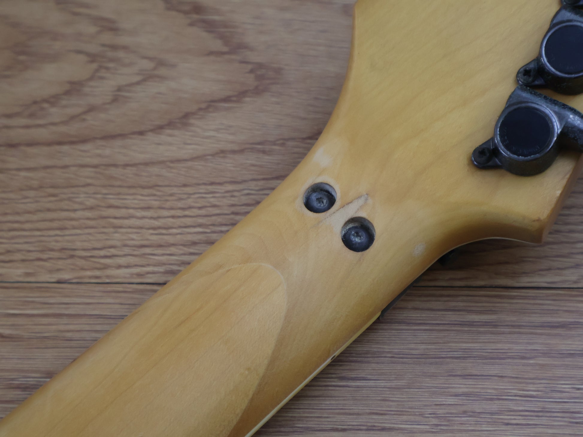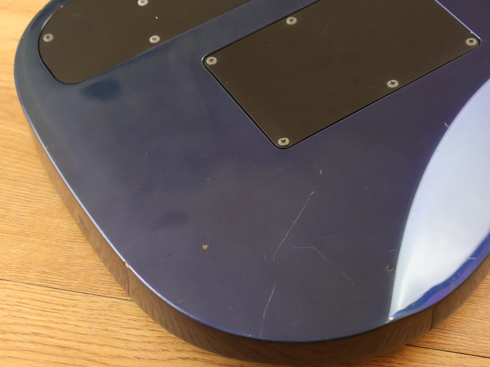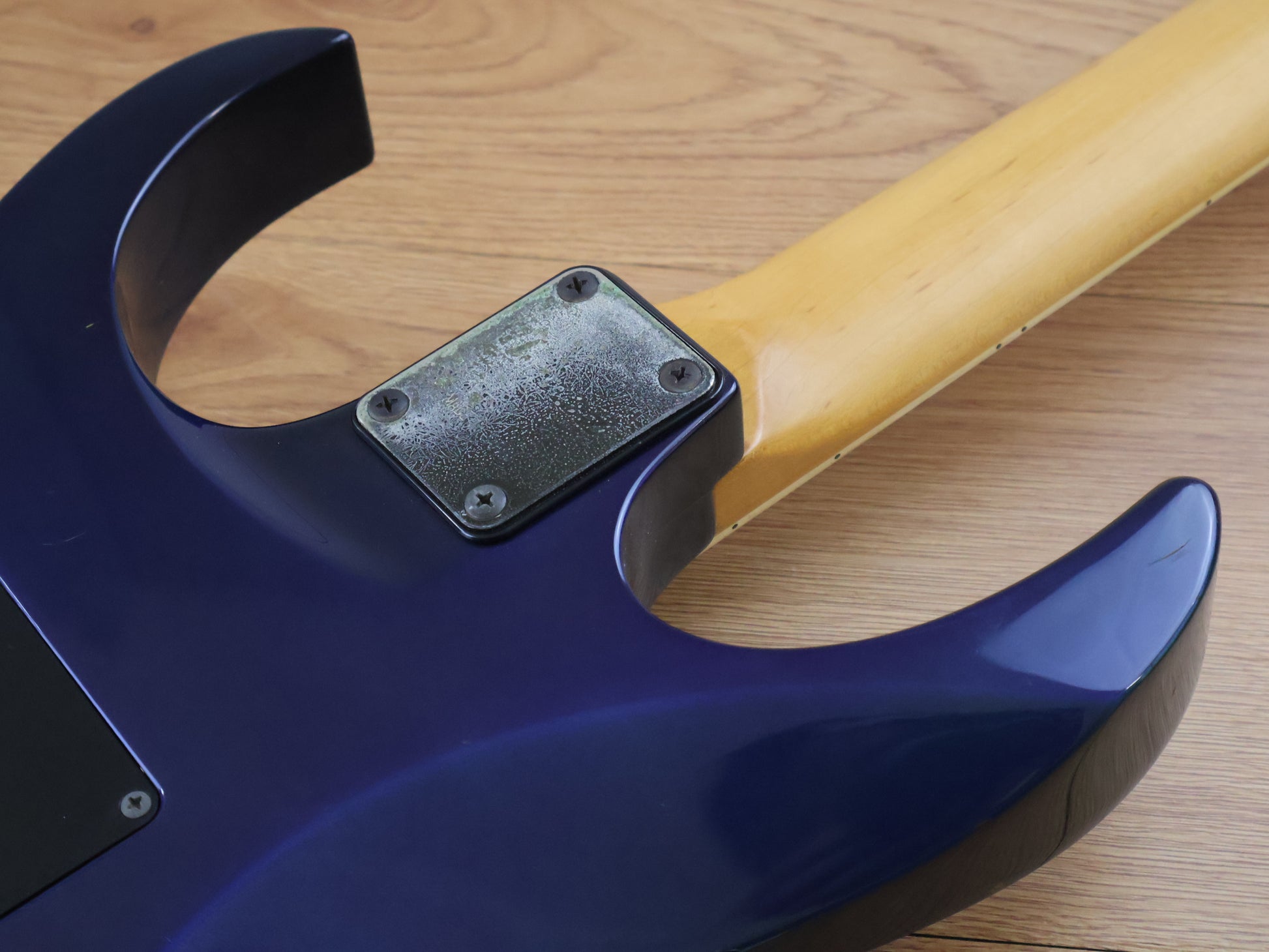 This one has a Lo-Pro Edge tremolo system instead of the original Edge system, otherwise it appears to be all original. The neck arrived to us with a slight crack near the nut screws as pictured, we've had it professionally injected with glue before being clamped, buffed and sanded so it's undetectable in the hand and the neck has a smooth and fast satin feel. There's plenty of signs of play-wear on this one as pictured however the neck is straight and the truss works as it should, the frets are shiny and smooth with plenty of life in them.