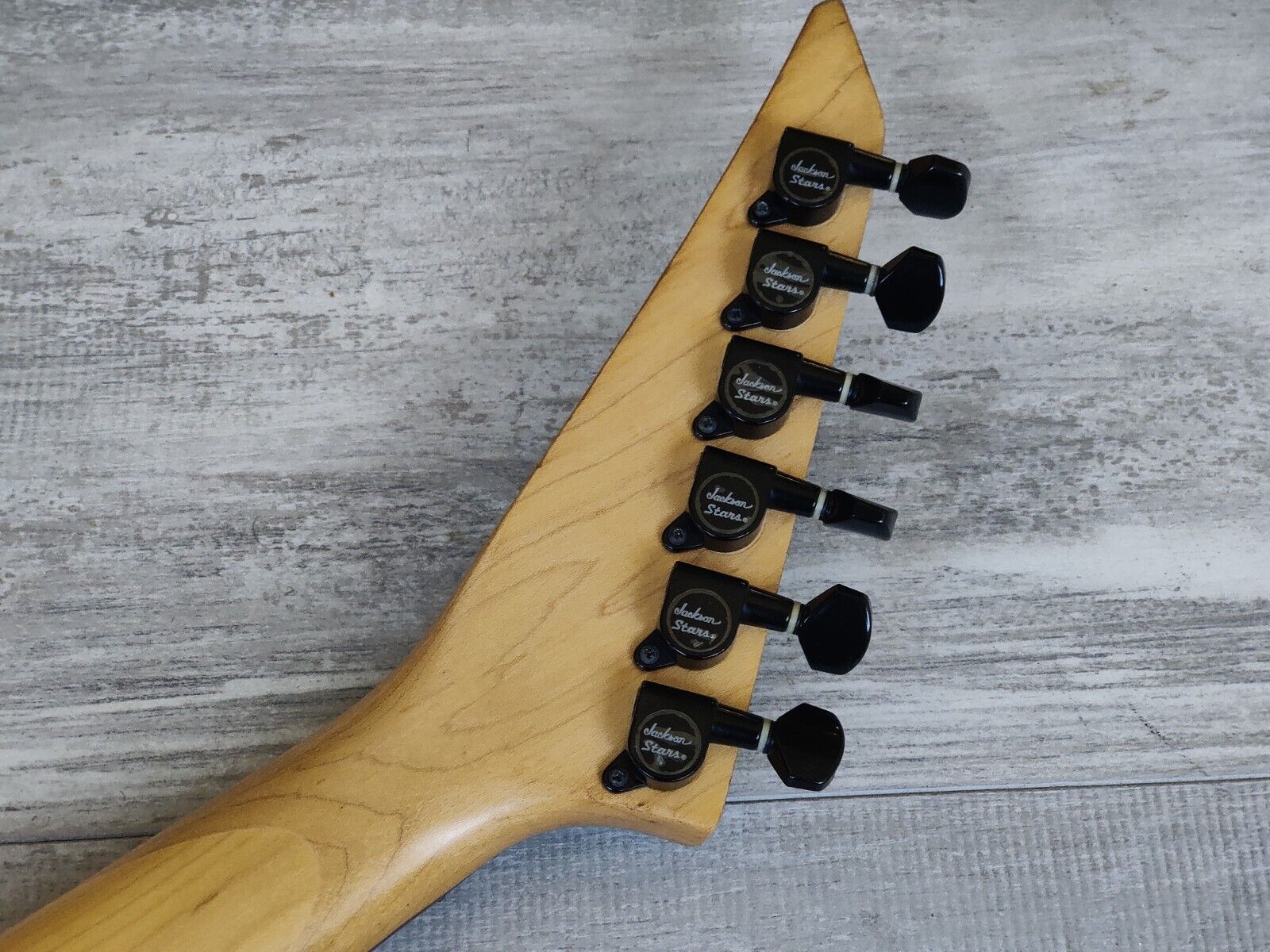 Made in Japan by Jackson in the 1990's, these have been steadily climbing in popularity recently due to their quality and price point. Looks to be a poplar body with a gloss black finish on the back and sides and a laminate quilt turqoise on the top, bolt on maple neck with a 24 fret rosewood fingerboard (648mm scale length), weighs 3.5kg's. Black GJ branded hardware and humbuckers (two volume knobs and a 3-way selector), it appears all original.