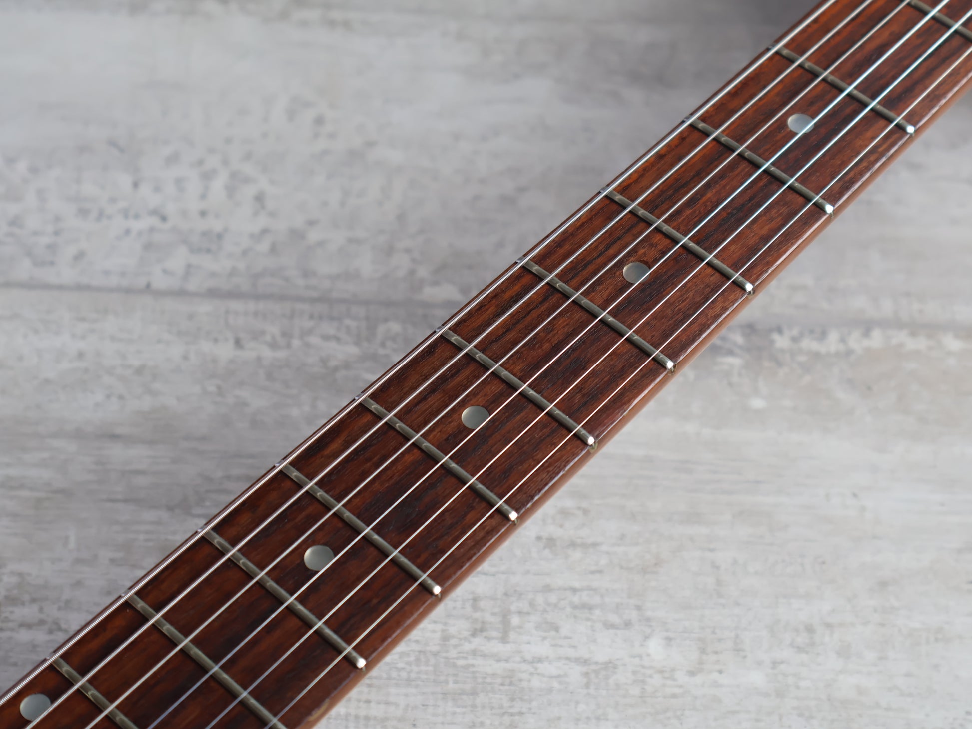 Factory loaded with Japanese hardware, three passive Levinson VS-1 single coil pickups can be used as normal or with the onboard factory upgrades including the 9v variable mid boost (controlled by push pots on the tone knobs and fine tuned by the trimpots on the battery compartment) to fully dial in your perfect tone. Levinson are known for their onboard electronics so you know you’re getting a good one here.