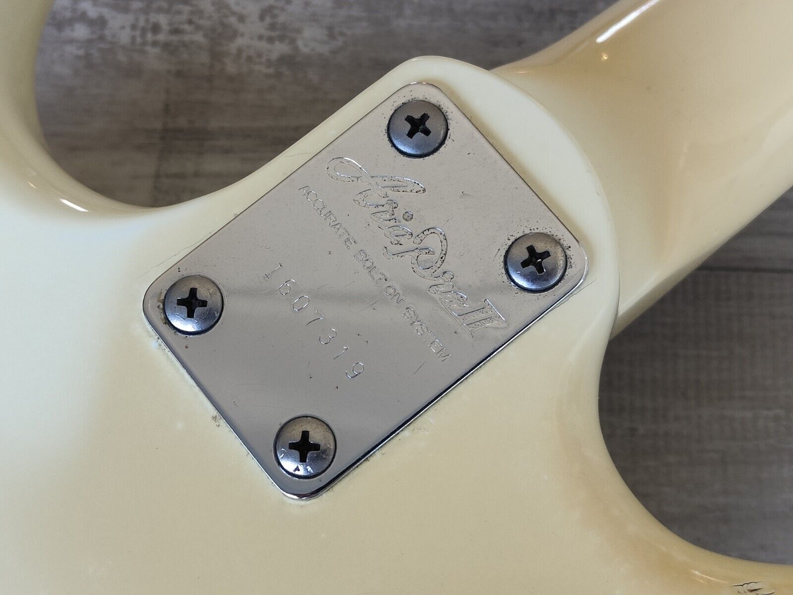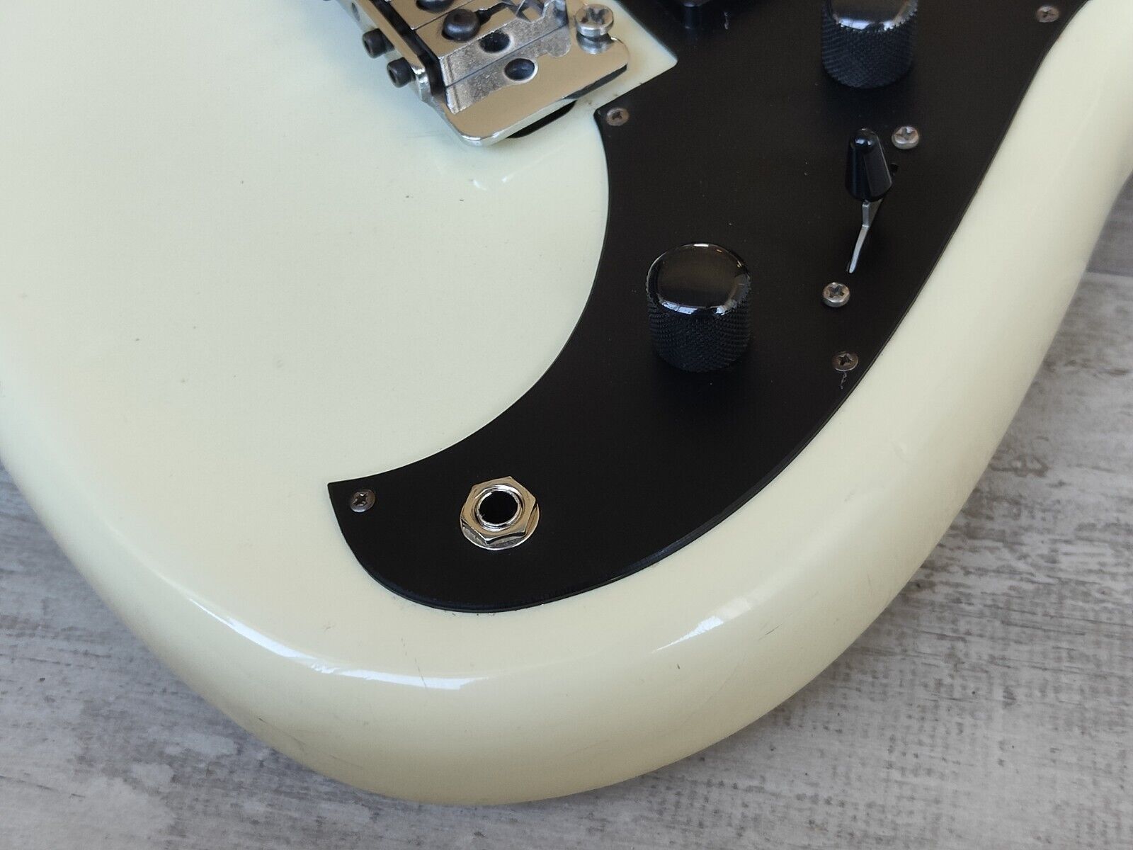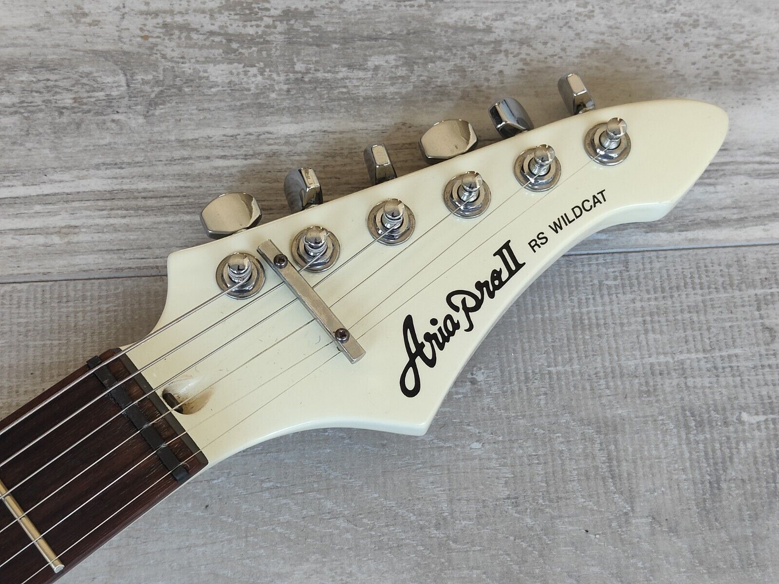 Likely made in Korea in the 1990's, the RS Wildcat was an original model from Aria Pro II. Contoured body with a 22 fret rosewood fingerboard (648mm scale length) and a painted slim maple neck, it weighs 3.2kg's. HH pickups with a coil split on the humbucker (push pull tone knob). Appears all original except for a new output jack and was given a basic setup and service prior to listing including a fret polish and fretboard oil.