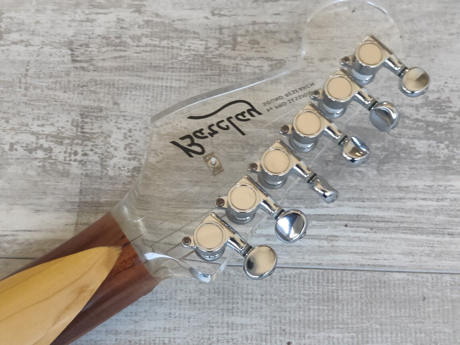 Made in Korea in the 1990's, Barclay made some incredibly cool acrylic instruments. This one's a hardtail Stratocaster build with a string-through acrylic body, maple neck with acrylic headstock and 22 fret rosewood fingerboard, weighs a hefty 5.1kg's. Three ceramic pickups with a 5-way selector, master volume and two tone knobs, it seems to be all original.