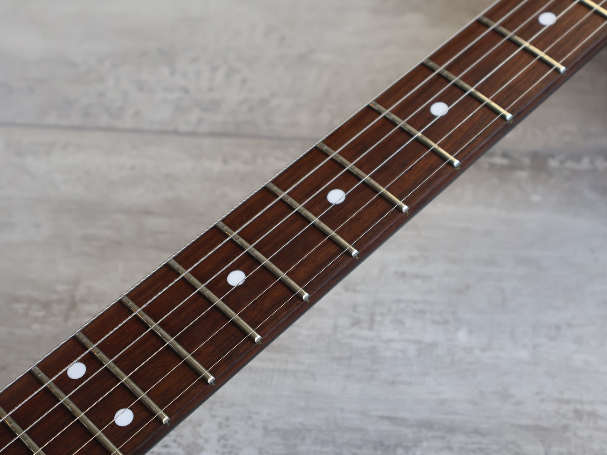 One of two artist models designed with Miki "SUN-GO" Igarashi of the band "SHOW-YA". Compact alder body with Wolfgang vibes, 24 fret rosewood fingerboard on a painted maple neck that has a very slight V profile, weighs 3.5kg's. 628mm scale length with a Stratocaster style tremolo system, it's loaded with original Bill Lawrence L-500 rail humbuckers (independent volume controls and a master tone knob).