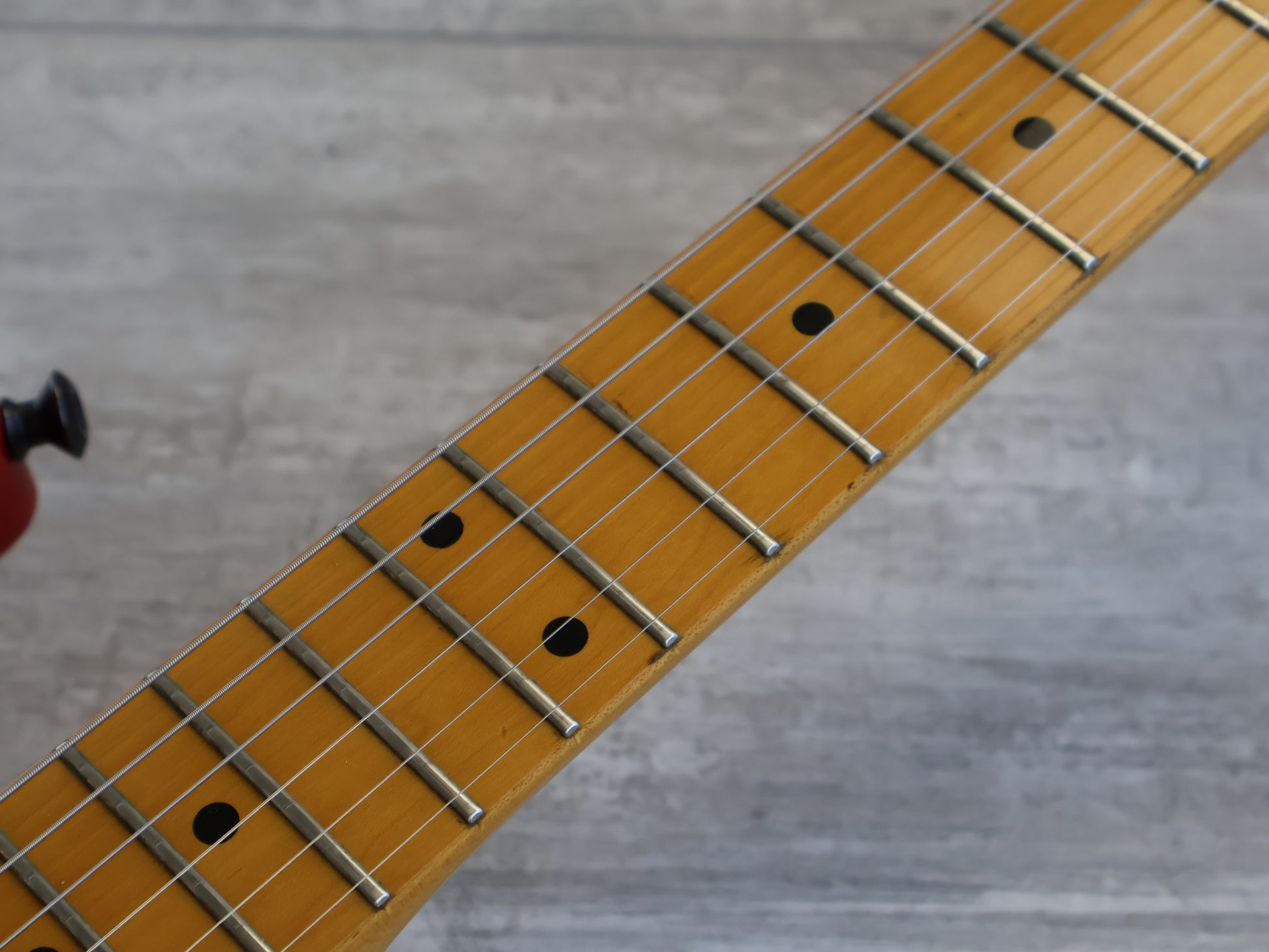 Clean condition for it's age, restrung and given a full professional setup and service prior to listing. The neck is straight and the truss is fully functional, the frets are shiny and smooth with plenty of life left. There's a very tasteful Ferrari sticker on the back that suits the vibe nicely.