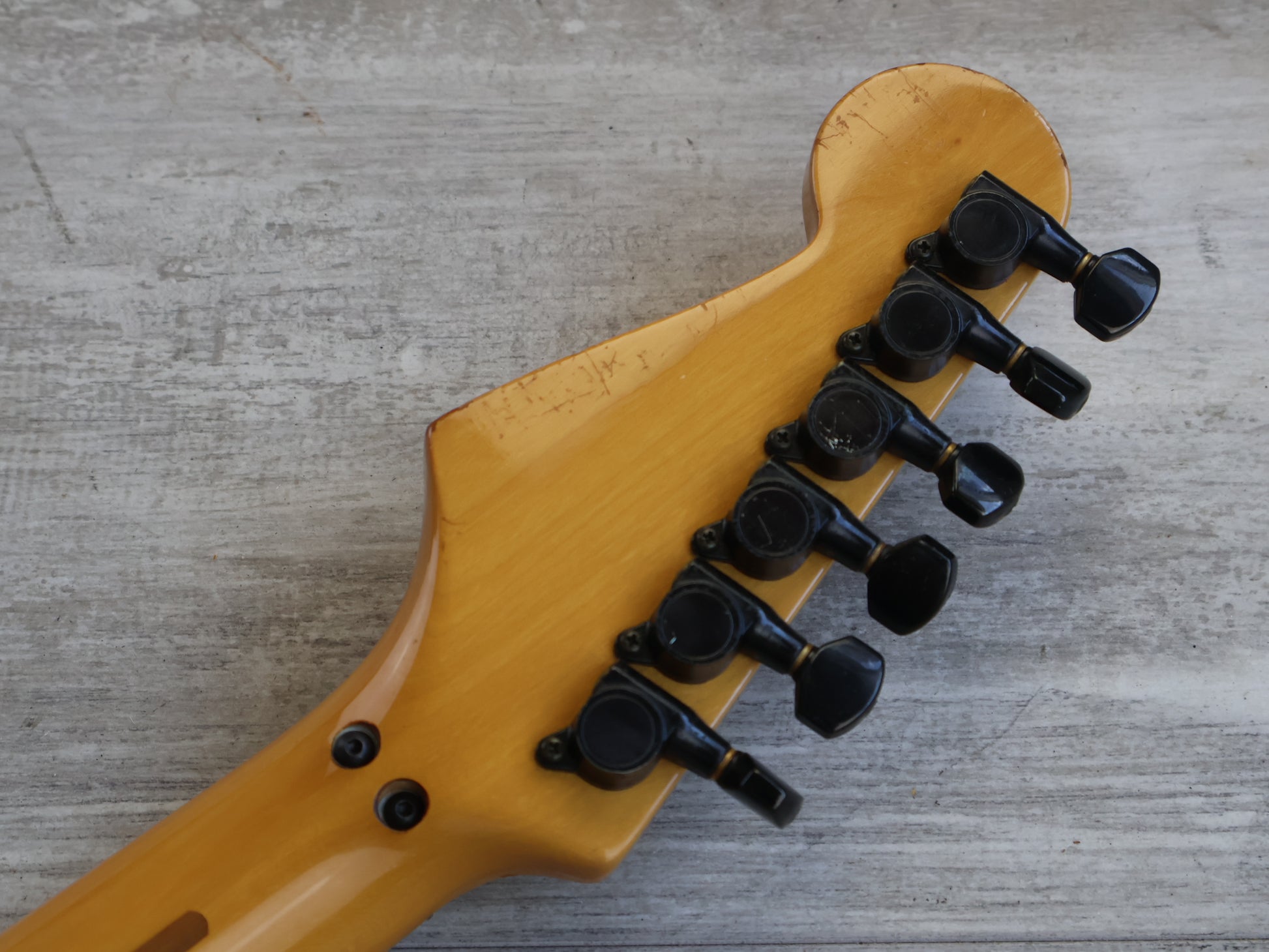 Seemingly a custom order one-off build by ESP in the 1990's, this "ESP320RJ" is a HH style Stratocaster with a Mirage body and a modern Stratocaster style neck. Solid alder construction with a medium V profile maple neck (42mm nut width, 648mm scale length), it weighs 4.2kg's. Loaded with a pair of vintage Dimarzio humbuckers controlled by a master volume control and three-way mini pickup selector along with the original Floyd Rose tremolo system.