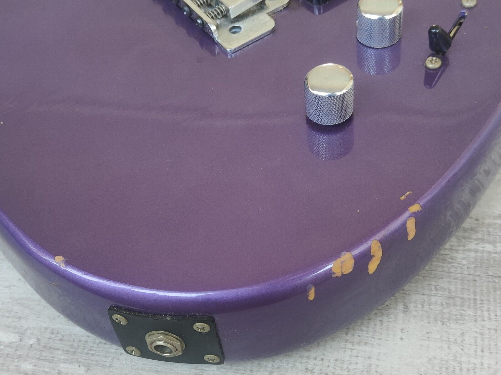 Made by Fernandes in the 1990's, this FST model features a purple Stratocaster shaped body with a painted maple neck and matching headstock, 22 fret rosewood fingerboard, weighs 3.3kg's. Loaded with the original HSS pickups controlled by a 5-way toggle and master volume/tone knobs (with an upgraded Sprague tone capacitor).