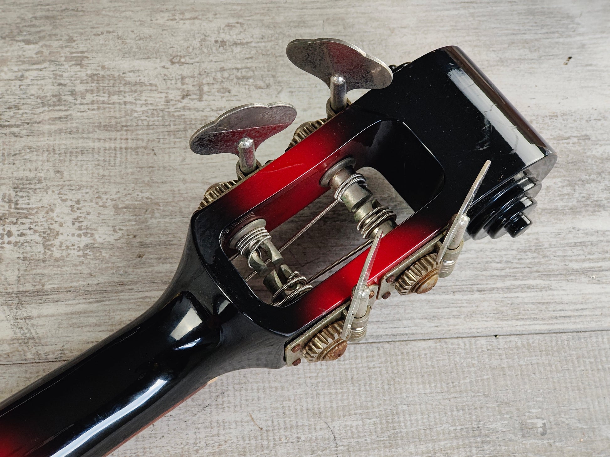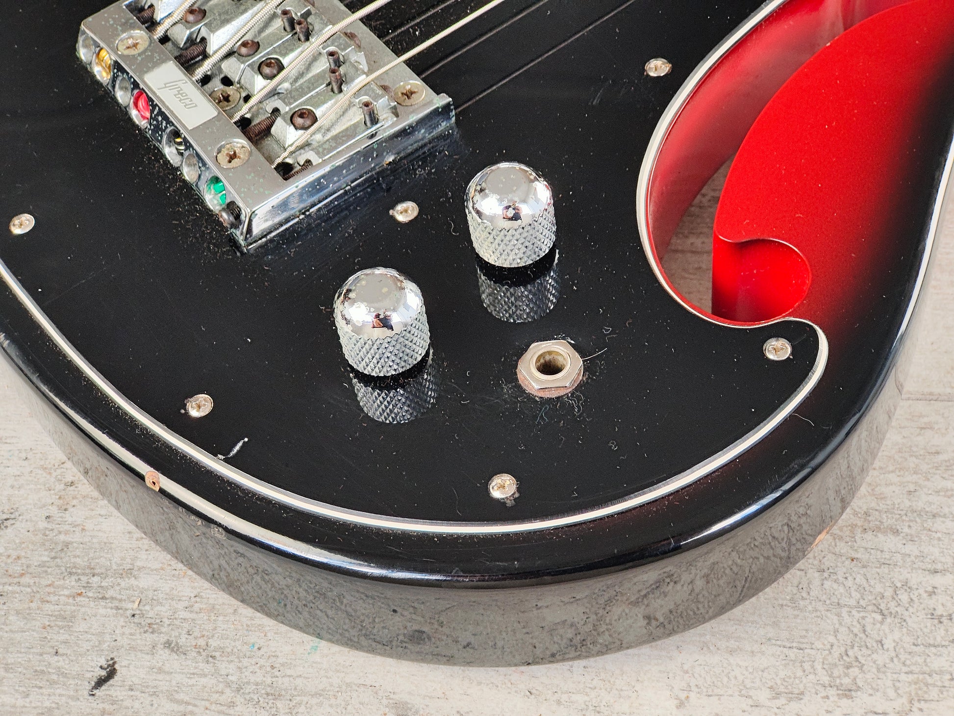 1990's Greco A-95 (Ampeg AUB-1) Scroll Bass (Black/Red Sunburst)