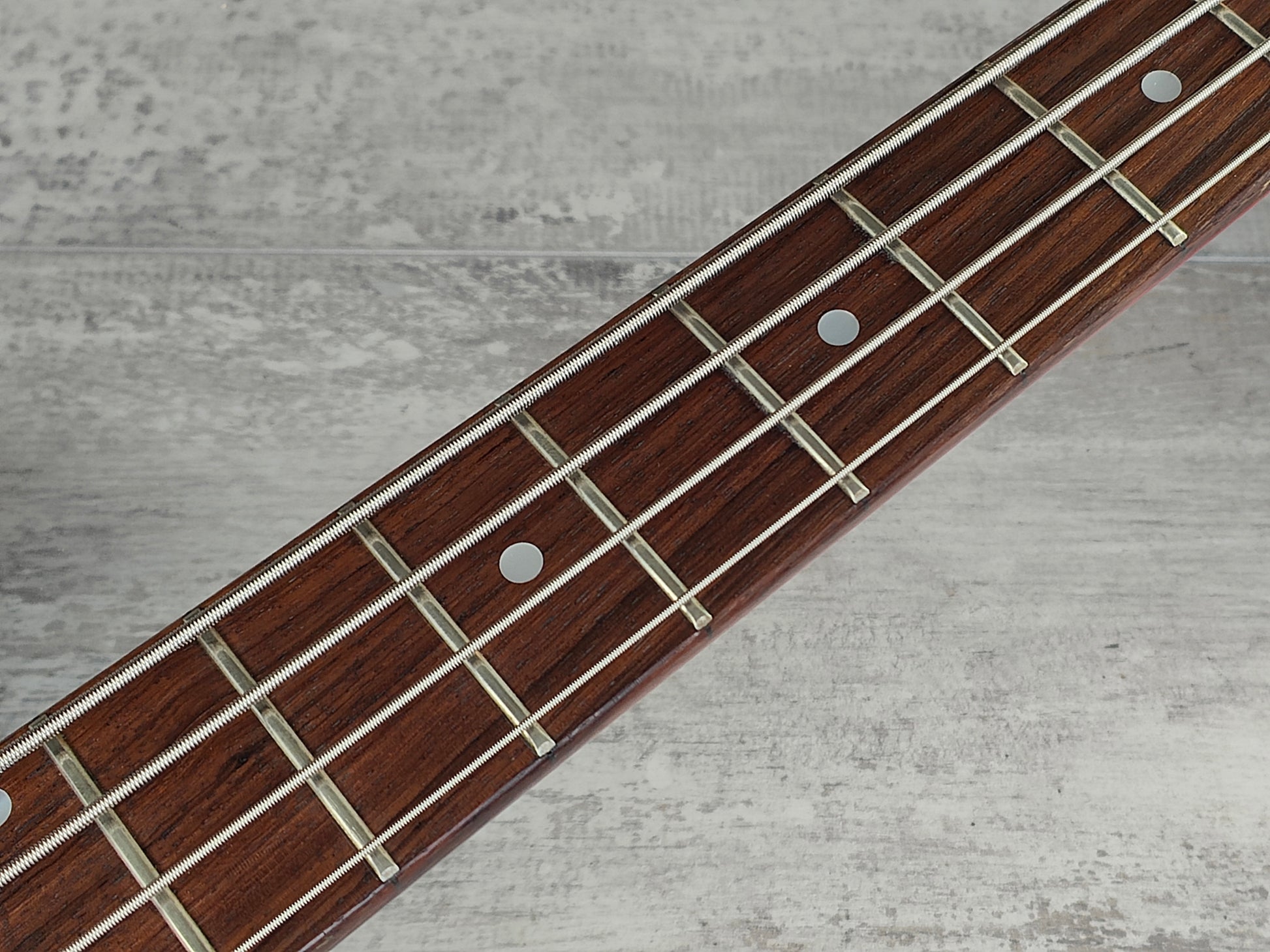 Loaded with a passive Jazz Bass style pickup controlled by volume/tone controls, it appears all original and has only basic signs of wear as pictured. Plays nicely as it sits with a straight neck, shiny frets and a fully adjustable truss.