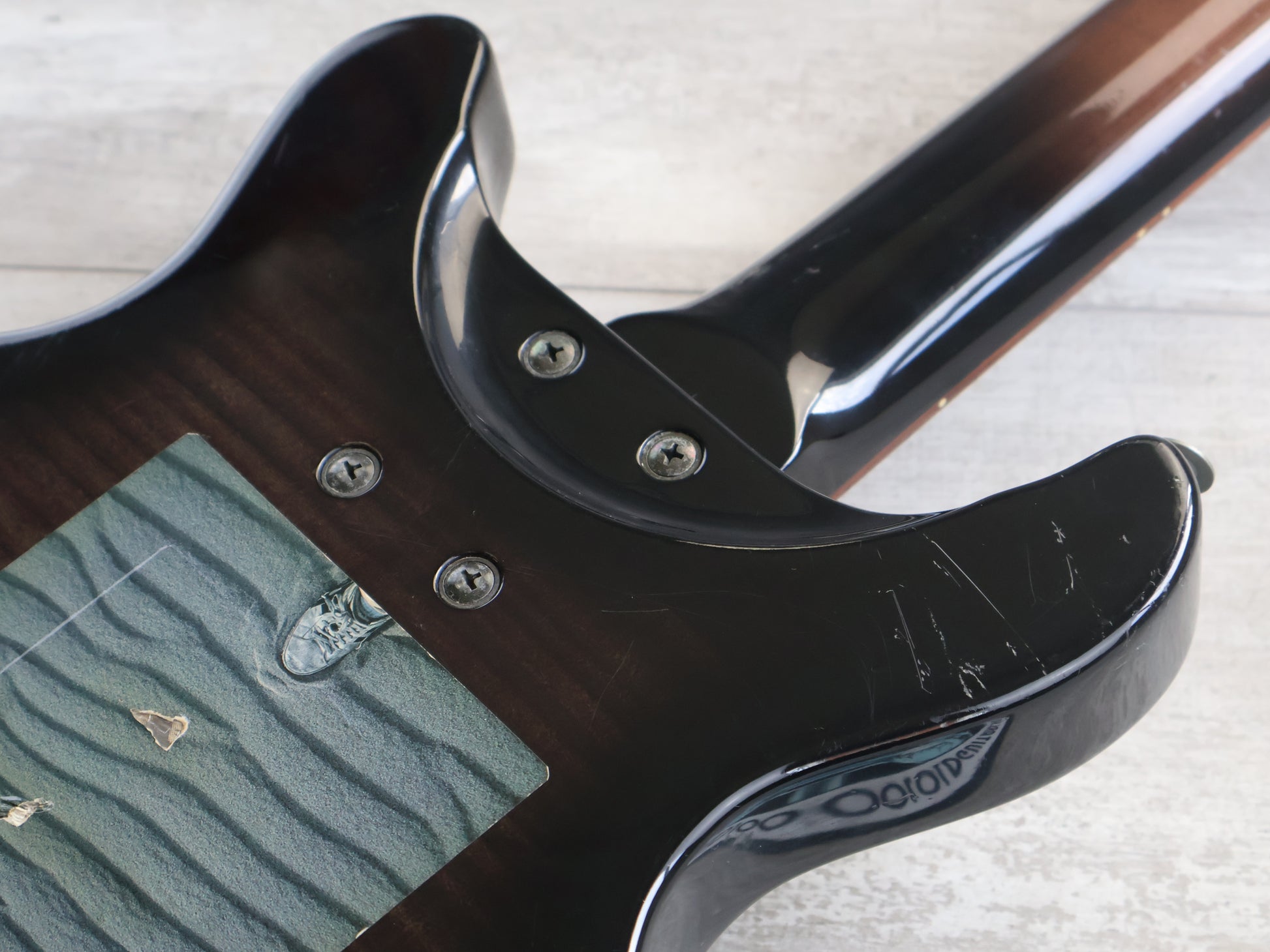Made in Japan by Greco in the late 1990's, the TV-SE was a Gibson style DC bass with a 32" medium scale for a compact playing experience. Solid body with a laminate flame top and back bolted to a 22 fret maple neck with a rosewood fingerboard, it weighs 4.3kg's. Loaded with the original "Power Storm" active bass humbuckers and active preamp, all working well.