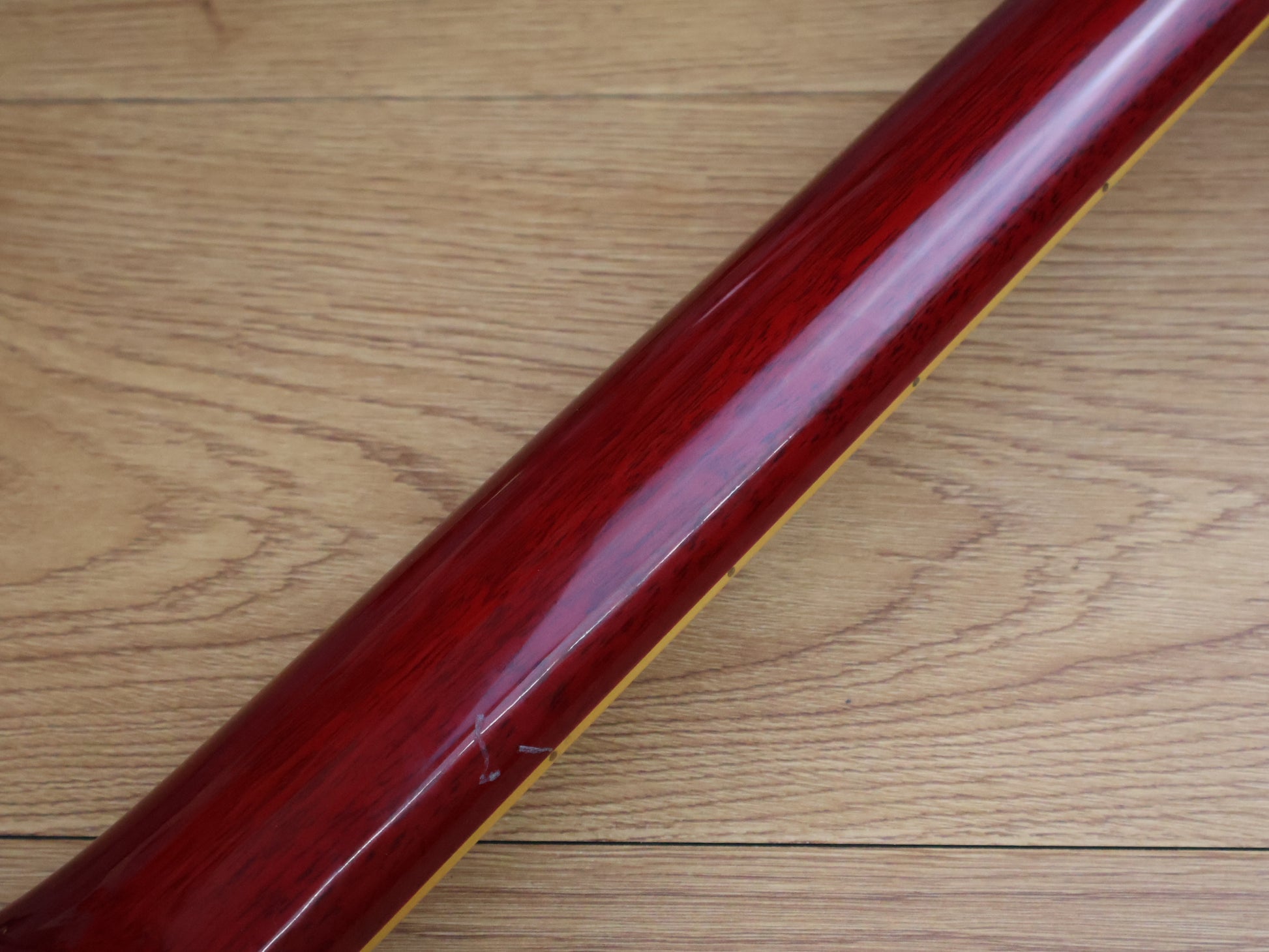 One of the Korean made Greco EG models from the 1990's that was produced by the Cort factory. Solid mahogany body with a maple top, slim 60's mahogany neck and a 22 fret fingerboard, it weighs 4.6kg's.