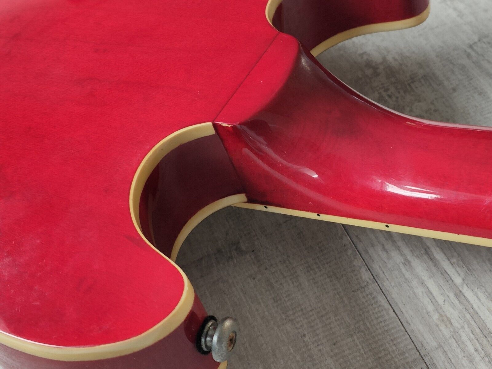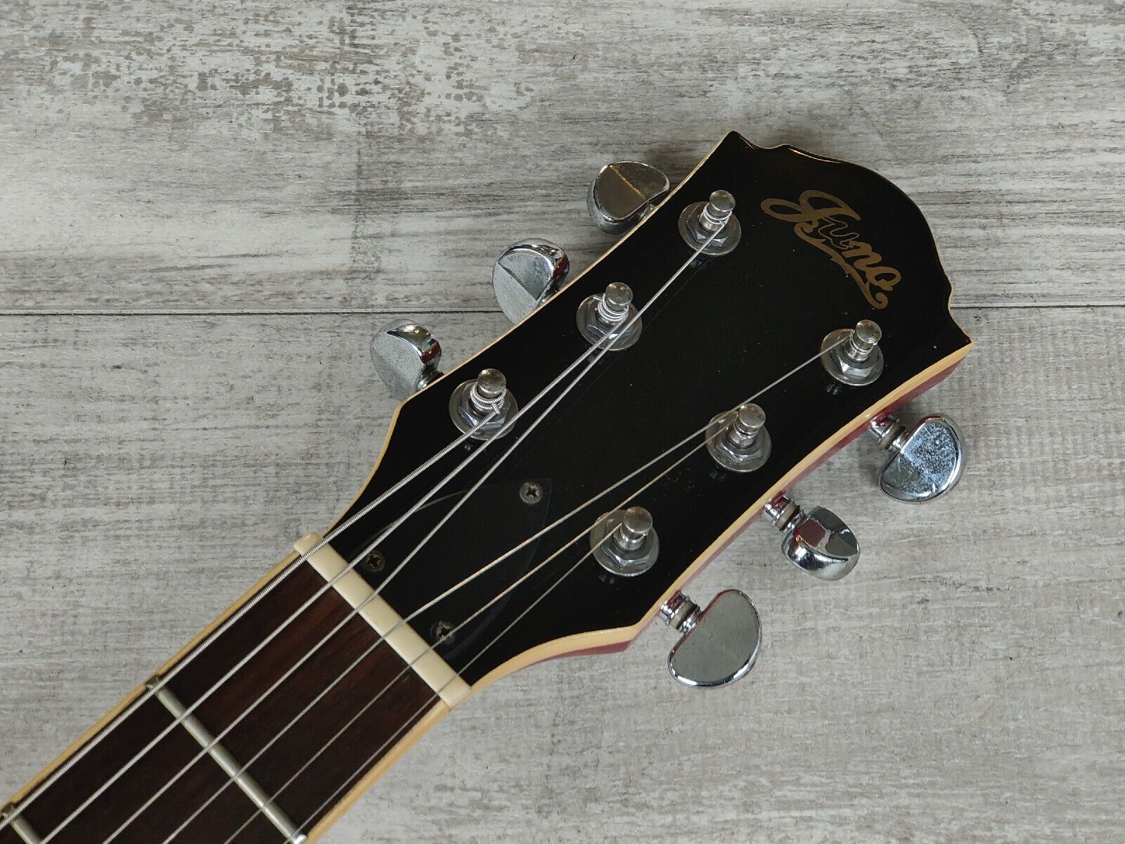A hollowbody model with Juno branding, sold to the Japanese market and most likely made in Korea. Full hollow construction with a body shape that's slightly more compact than a ES-335 (closer to a Wahburn HB-35), weighs 3kg's. Looks original with Grover tuners and no real branding anywhere else on the hardware.