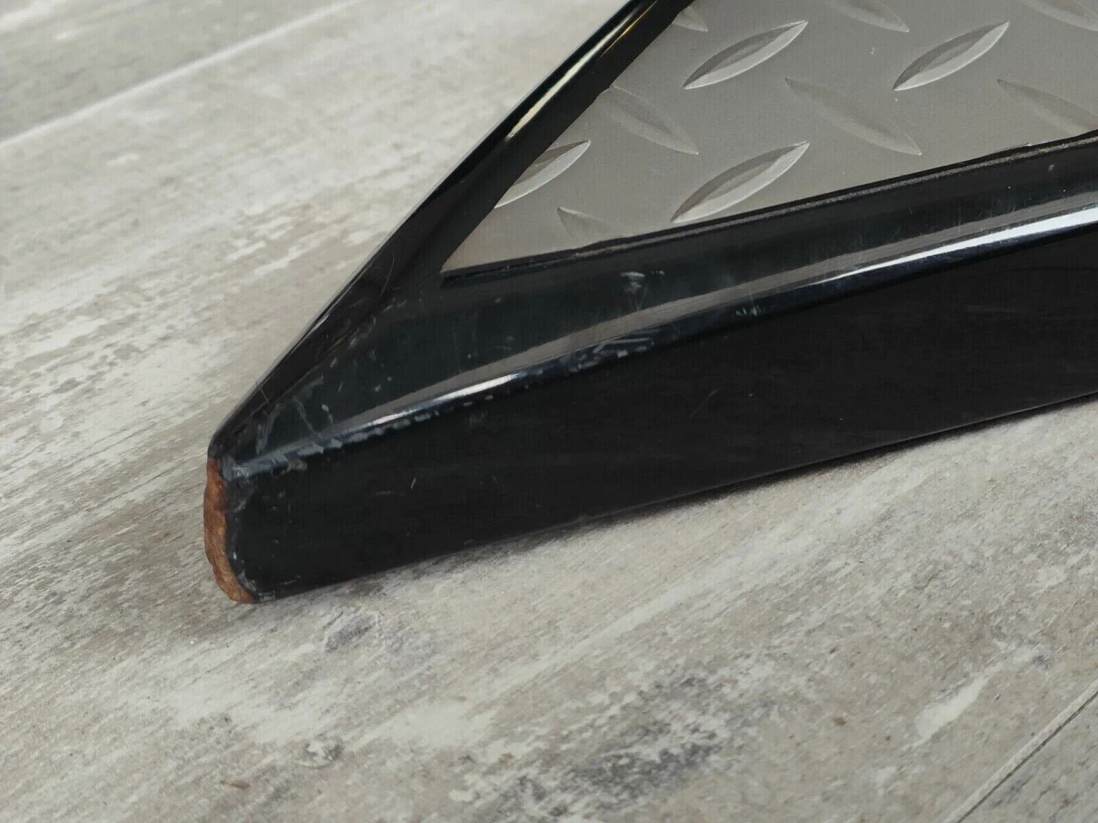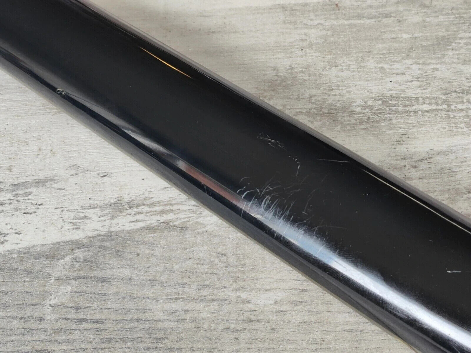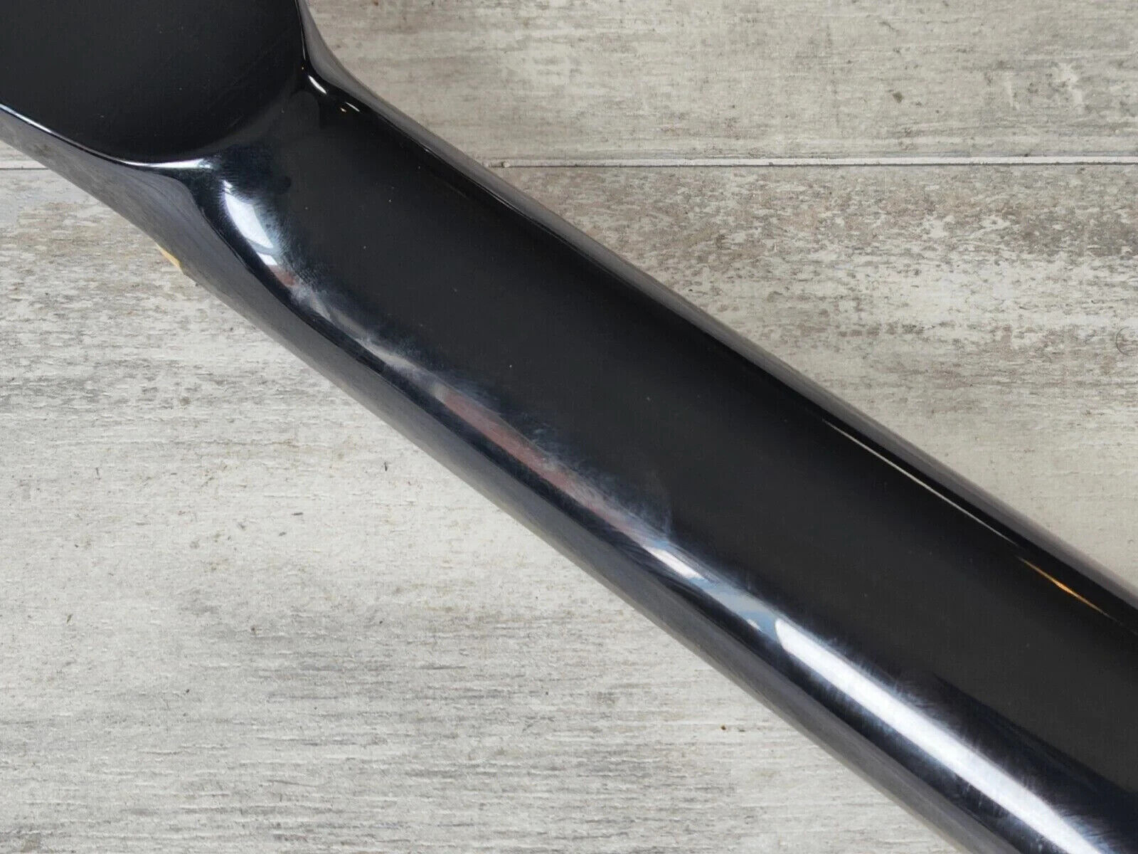 The loser of a previous owner thought they'd be super cool and attach a rubber "black diamond" plate on the top and swapped out the original strap buttons for strap locks so they didn't drop it (but they clearly dropped it anyway as there's chips on the horns).