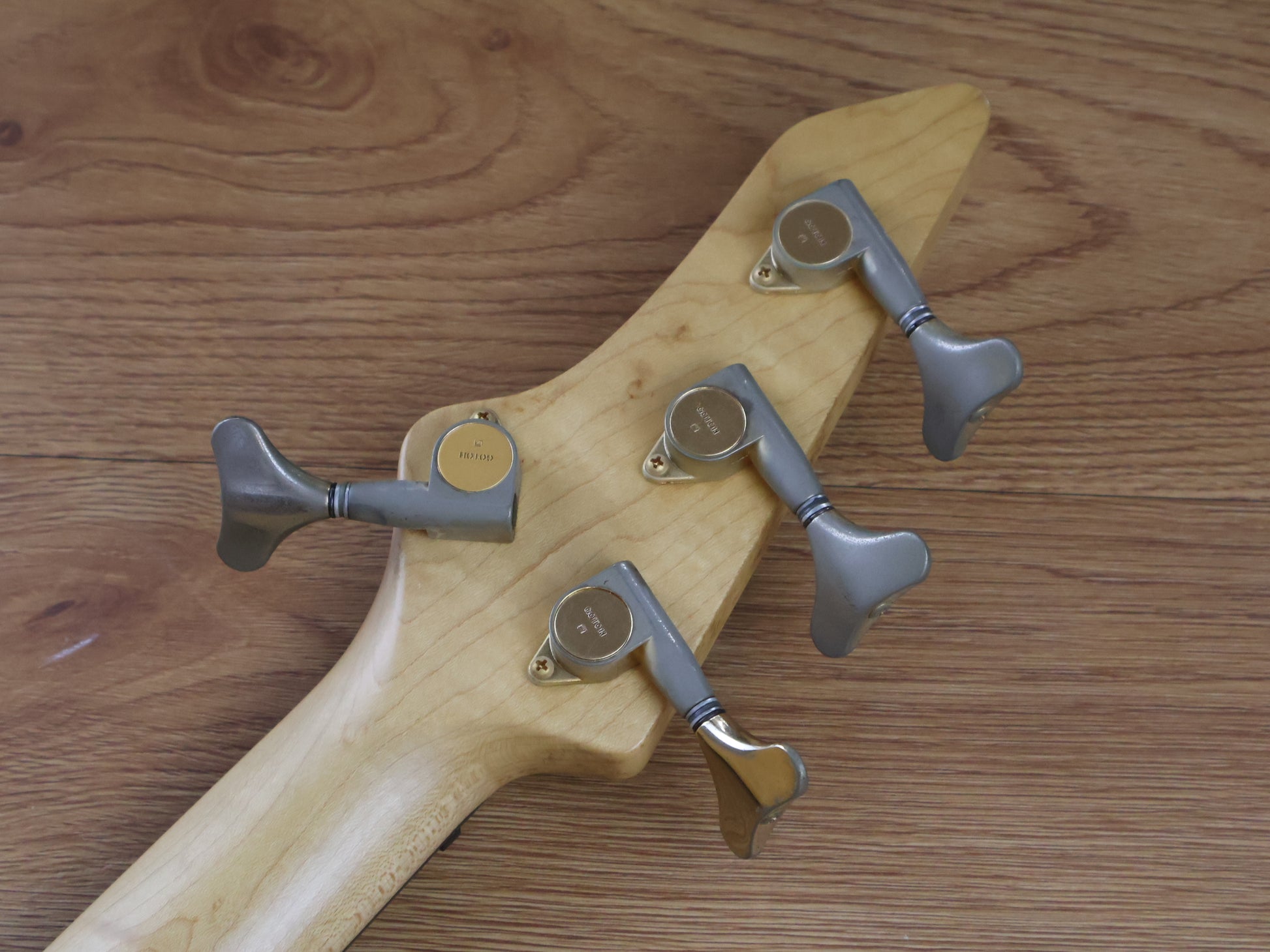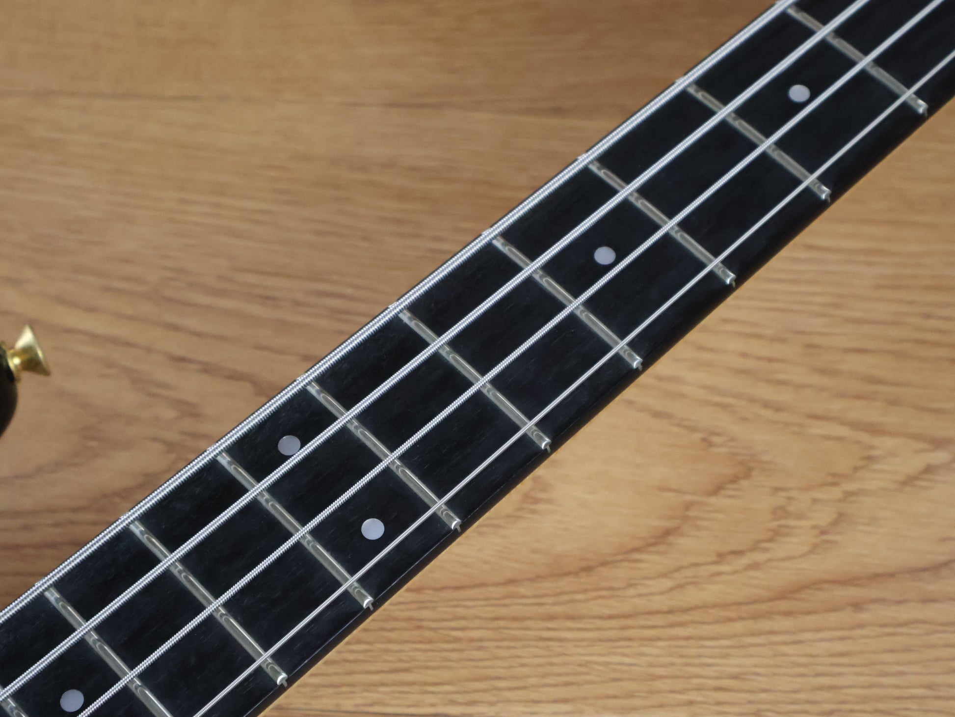 Made in Japan by Fernandes during the 1990's, the PUM-1 was a professional grade bass with a glossy black ash body, maple neck and 24 fret ebony fingerboard, it weighs just under 4kg's. Loaded with a pair of active EMG's along with a three-band EQ system on the concentric pots, the factory Schaller bridge and Gotoh tuners keep it tuned and intonated perfectly.