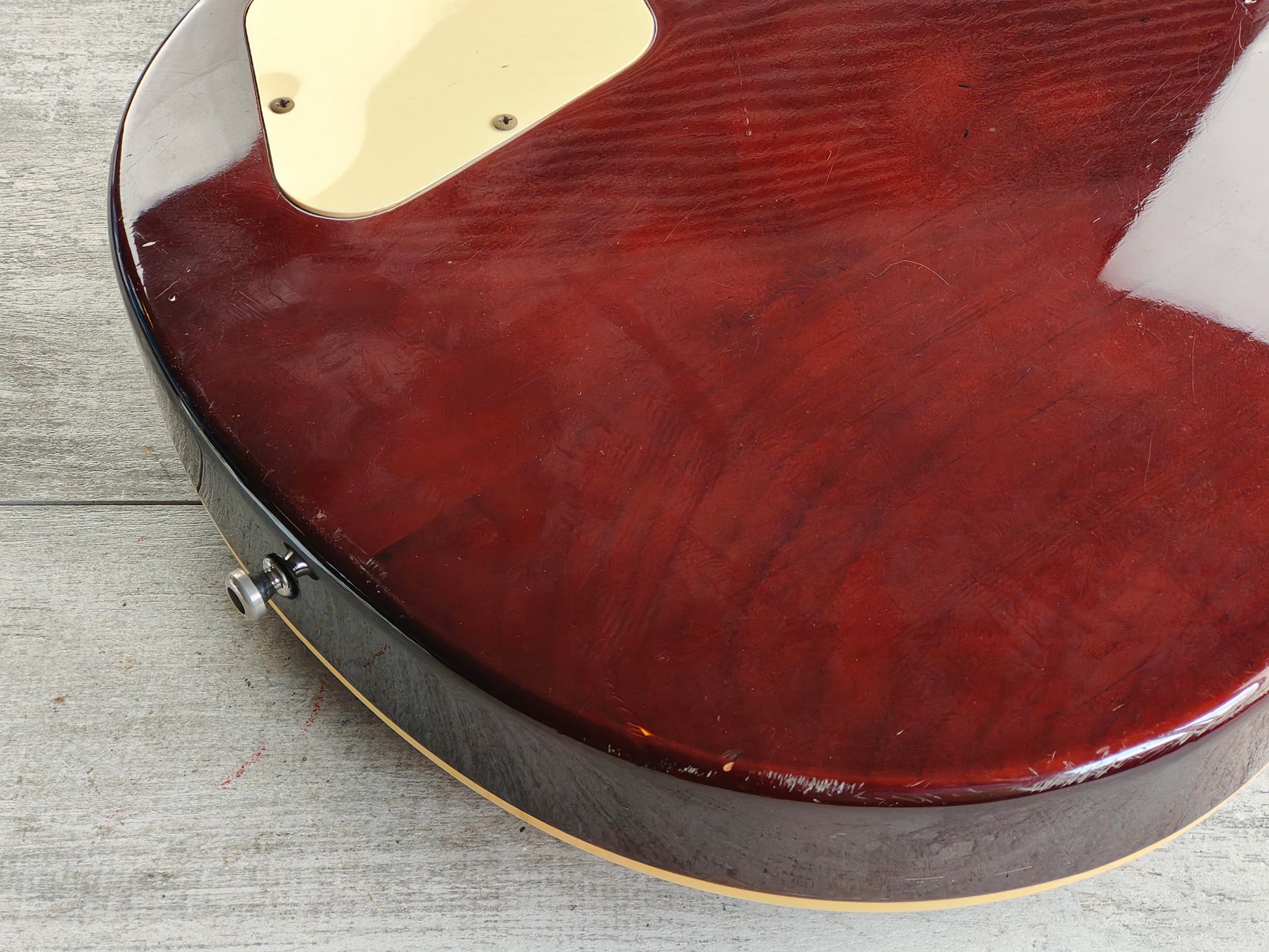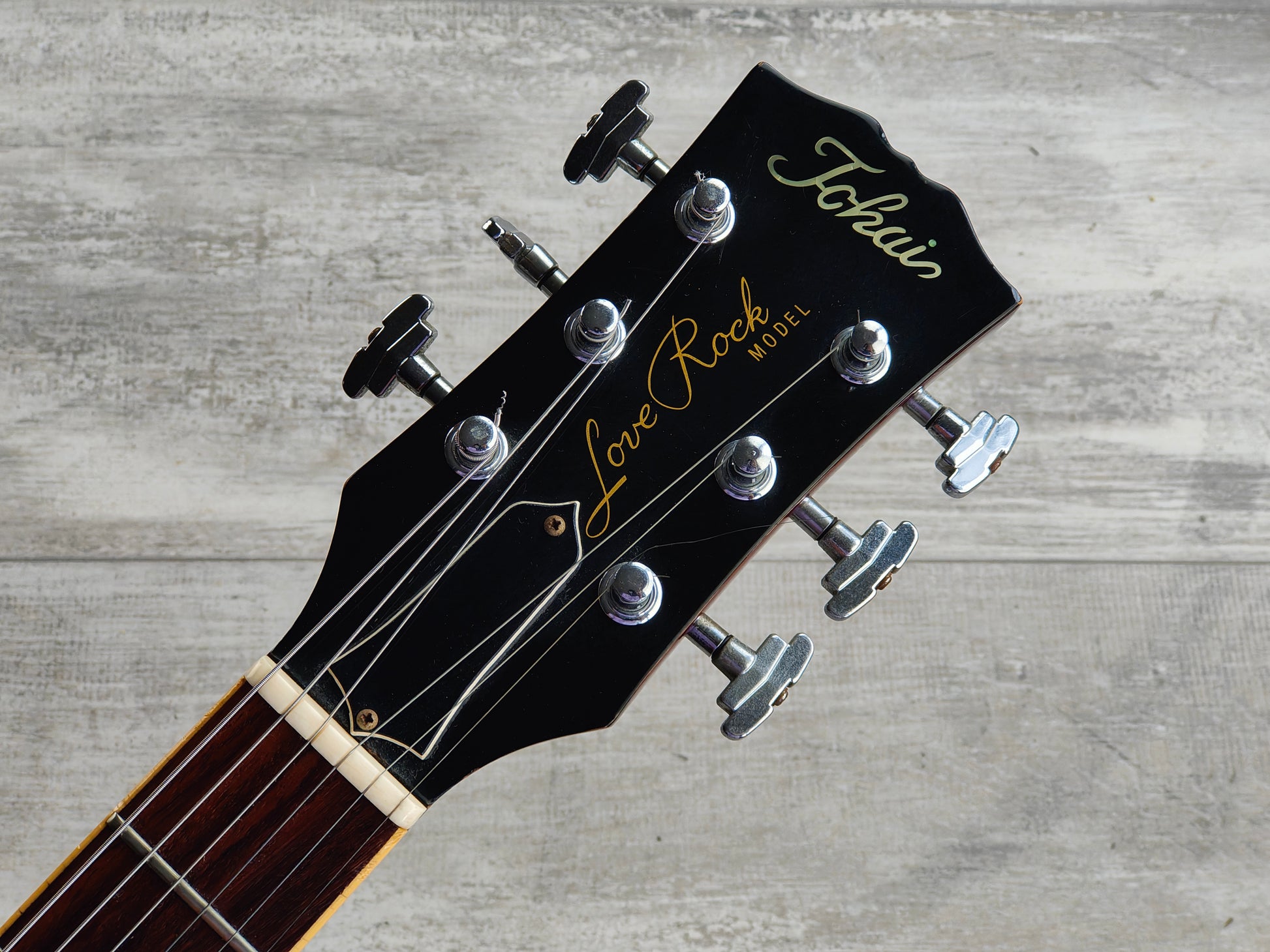 One of the Korean made Love Rock models from the 1990's, these are usually considered a step above the modern Chinese builds from Tokai. Solid alder body with a laminate maple flame top set to a slim 60's mahogany neck, it weighs 4.2kg's. Has one replacement knob and a set of Grover tuners installed otherwise it appears all original.