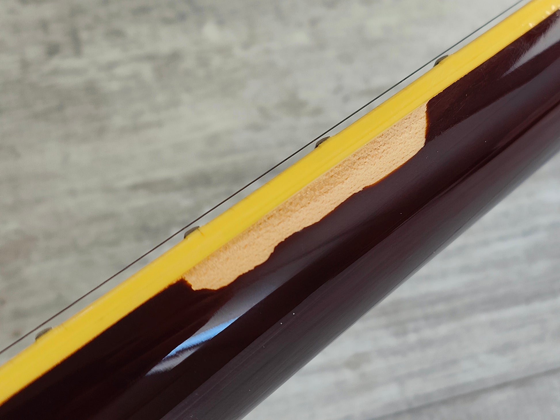 Overall good condition as pictured with a straight neck and plenty of life in the frets. There is a previous repair to the side of the neck where the paint has chipped off, the area was refinished in clear and is almost undetectable in the hand with no sharp edges or impact on playability, it's purely a cosmetic flaw.