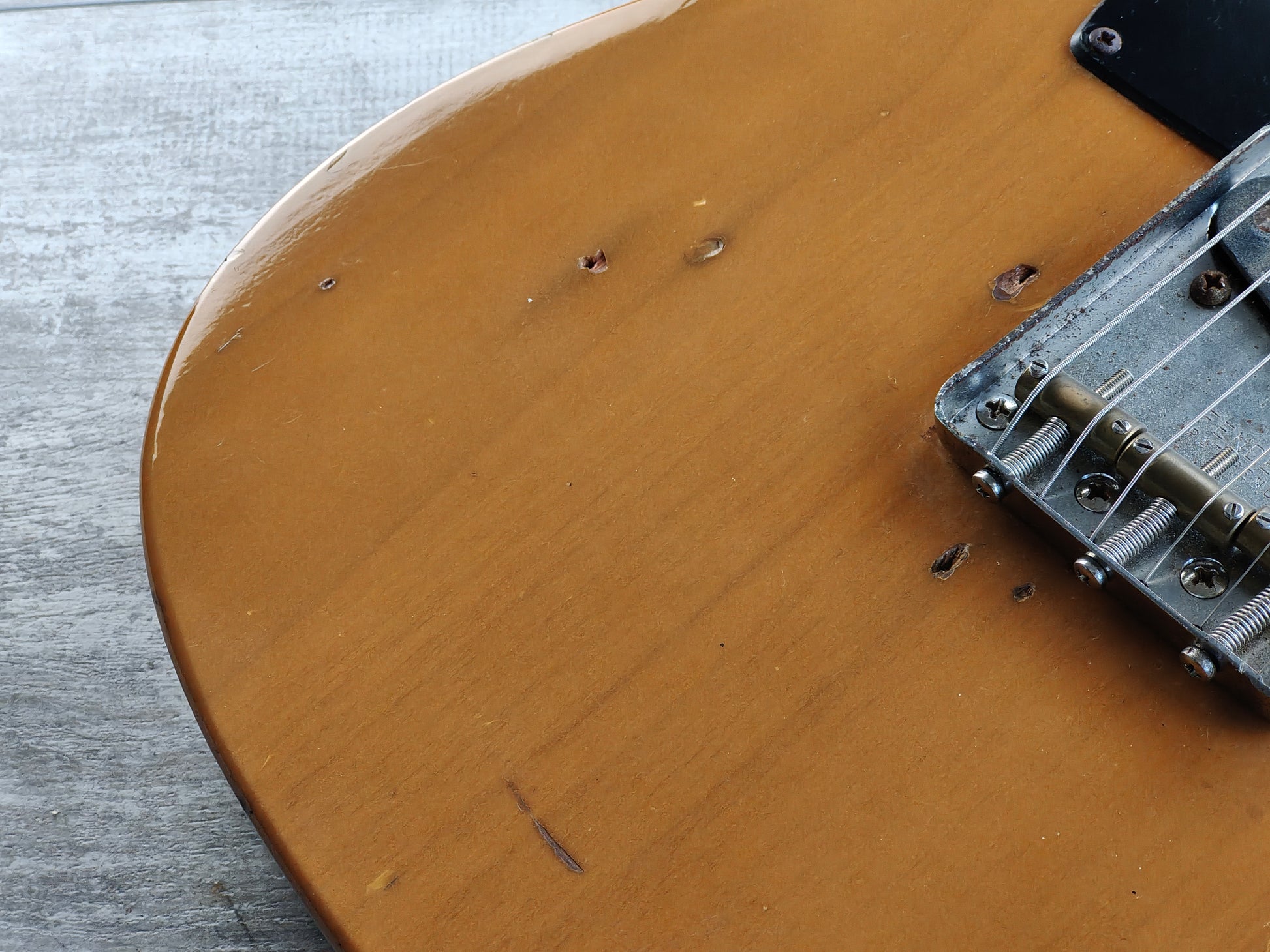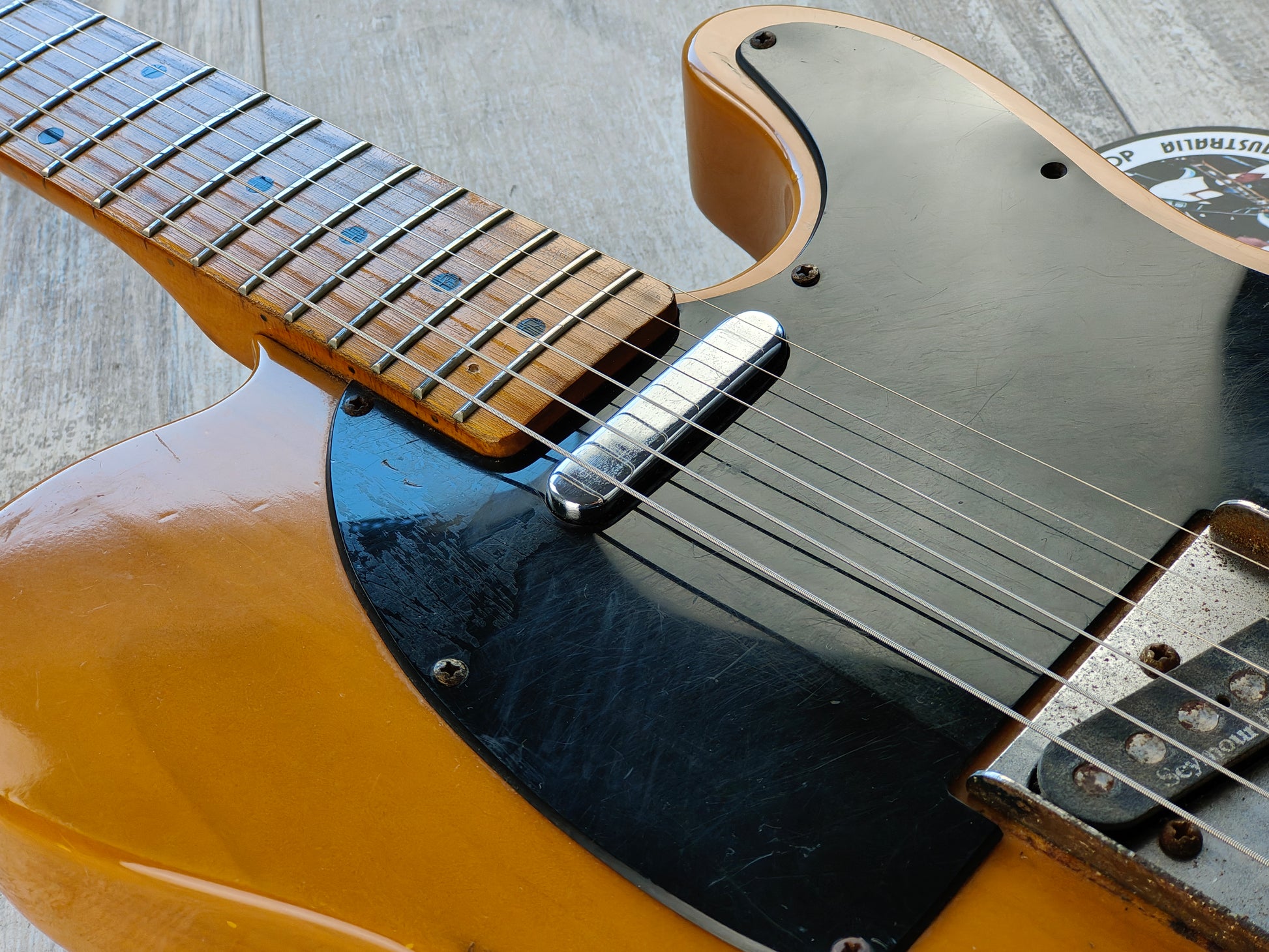 Made in Korea during the 1990's, the Torch Vintage Series TL54BTS was their affordable take on the '54 Fender Telecaster. With a solid body wearing a transparent blonde finish bolted to a one-piece maple neck (43mm nut width, 21 frets), it weighs just over 4kg's.