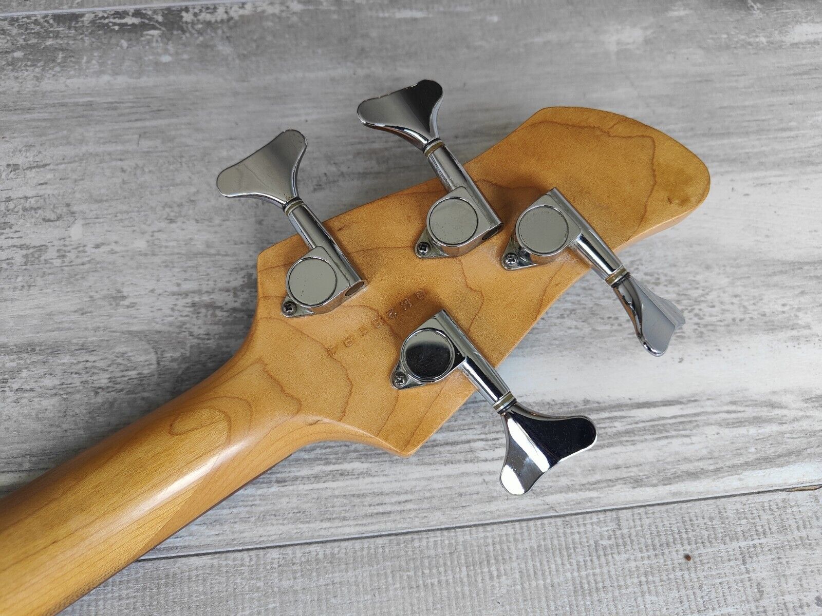 Made in Taiwan in the 1990's, the Motion B series are nice compact bass guitars that are perfect for smaller players or guitarists dabbling in the 4 string world. Natural stain on the body with a maple neck and 24 fret fingerboard (820mm scale length), weighs 3kg's. Loaded with passive PJ pickups controlled by volume, tone and balancer knobs.