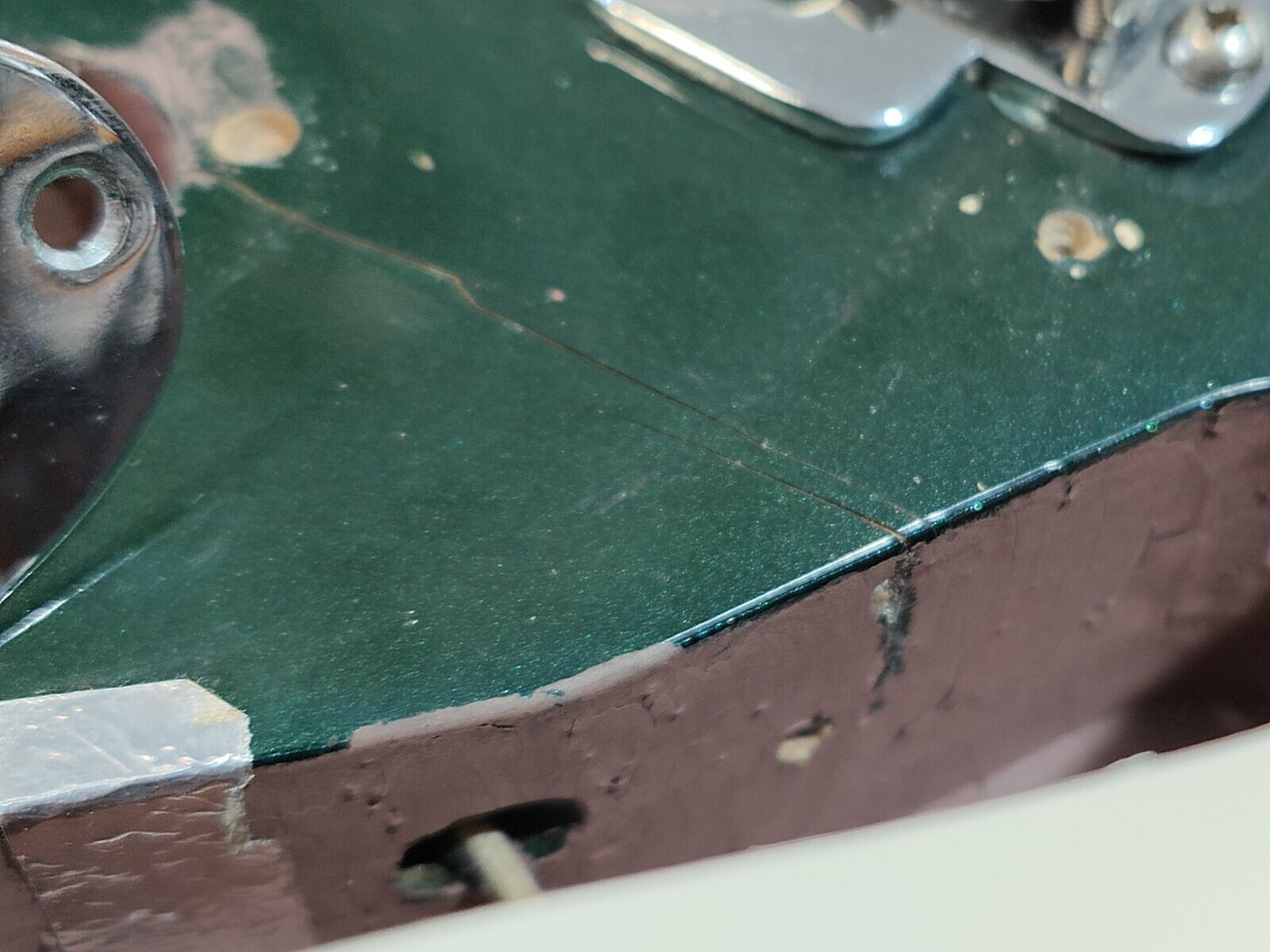 This one has some unfortunate cracks in the body that seem solid with no huge amount of movement even under heavy pressure. Might be worth having them glued and clamped though to reduce any further separation. Received a basic setup and service before listing. Sold as-is.