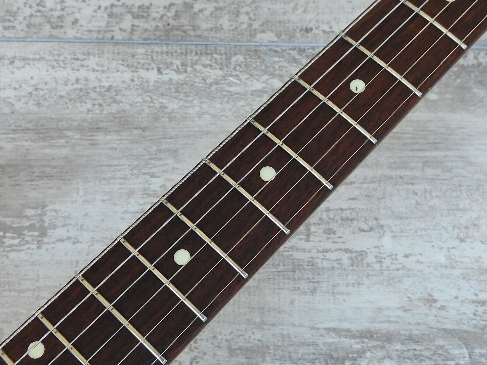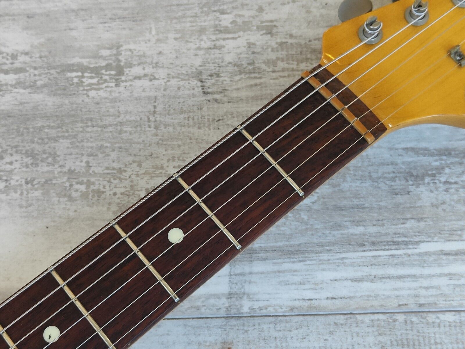 The refinished body is in mint condition and overall the rest of the guitar is in reasonable vintage condition with basic wear and tear. The hardware has some light patina and the plastics have faded, the neck is straight with an adjustable truss and the frets are shiny with some light pitting. Restrung and given a full professional service prior to listing.