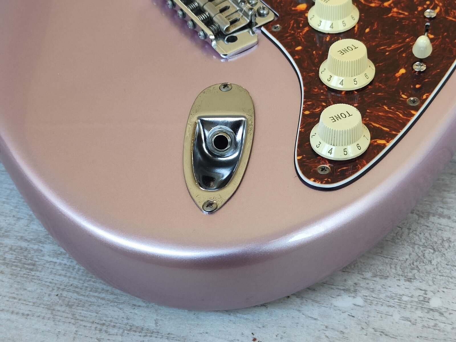 Made by the Fujigen factory in 1991 before being refinished professionally in 2023, the ST62-770LS was Fender Japan's '62 Reissue Stratocaster with factory Lace Sensor pickups. We'd say this is closest to a metallic Burgundy Mist acrylic/enamel finish on an alder body with a maple neck and rosewood fingerboard (7.25" radius), weighs 3.4kg's. Loaded with the factory fitted Fender Lace Sensor single coil pickups controlled by a 5-way selector, the active mid boost circuit was removed from this one and it now has standard Stratocaster wiring. Looks to have a replacement neck plate and pickguard along with two new Alpha pots, the bridge, saddles and tuners are all original.