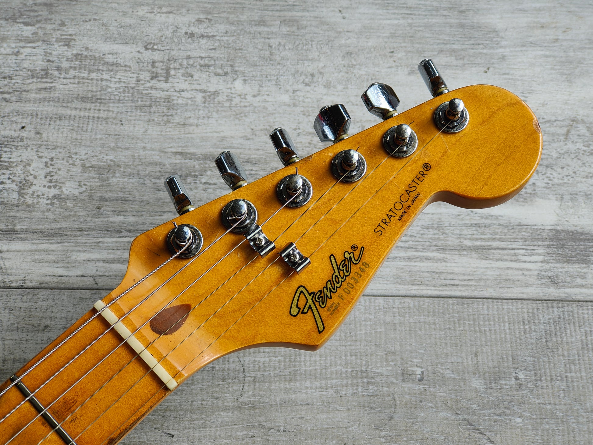 Made in Japan by the Fujigen factory in 1991, this is a "Standard" model Stratocaster that was designed to be closer to the American Standard model instead of a vintage reissue.