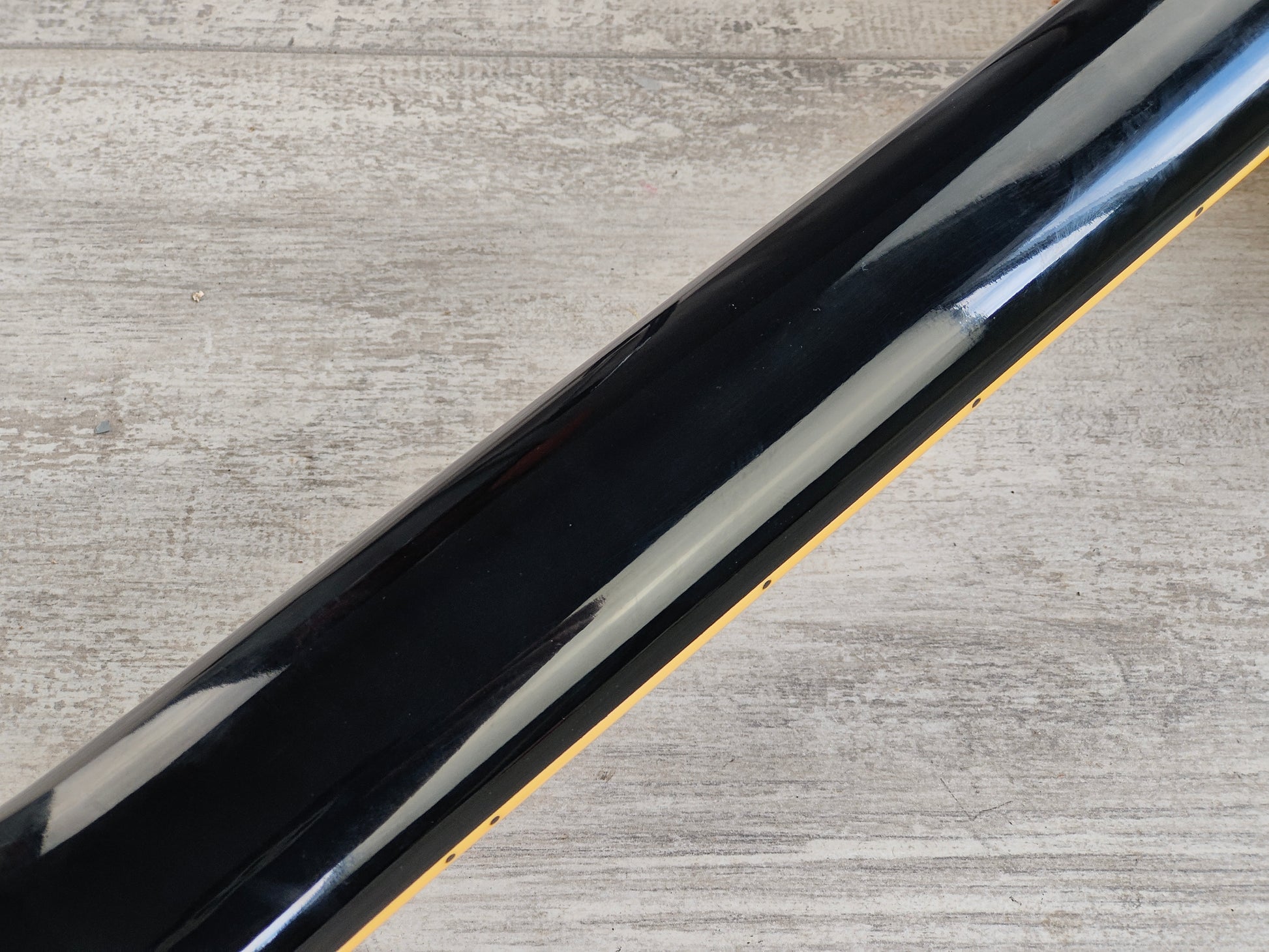 Made in Japan by Fernandes in 1991, the TEJ is an ultra-modern variation on the Fender Telecaster design. Basswood body bolted to a painted maple neck with a 22 fret rosewood fingerboard (13.75" radius, 648mm scale length, 43mm nut width), it weighs 3.5kg's.