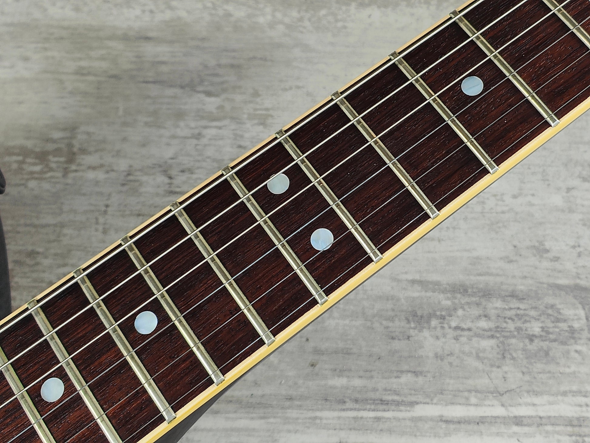 Good overall condition with a few minor dings here and there. Received a full professional service prior to listing including new strings, fretboard oil, fret polish and a truss adjustment, plays and sounds great. Frets have some light wear but are shiny and play smoothly.