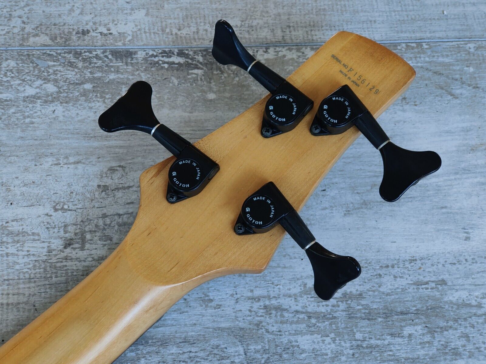 Japanese made in 1991, the SR-600D was a modern compact bass with a contoured basswoodz body, maple neck and 24 fret rosewood fingerboard, it weighs 3.5kg's. Loaded with a passive PJ pickup loadout (IBZ P/J-1) controlled by master volume/tone knobs and a pickup balance knob.