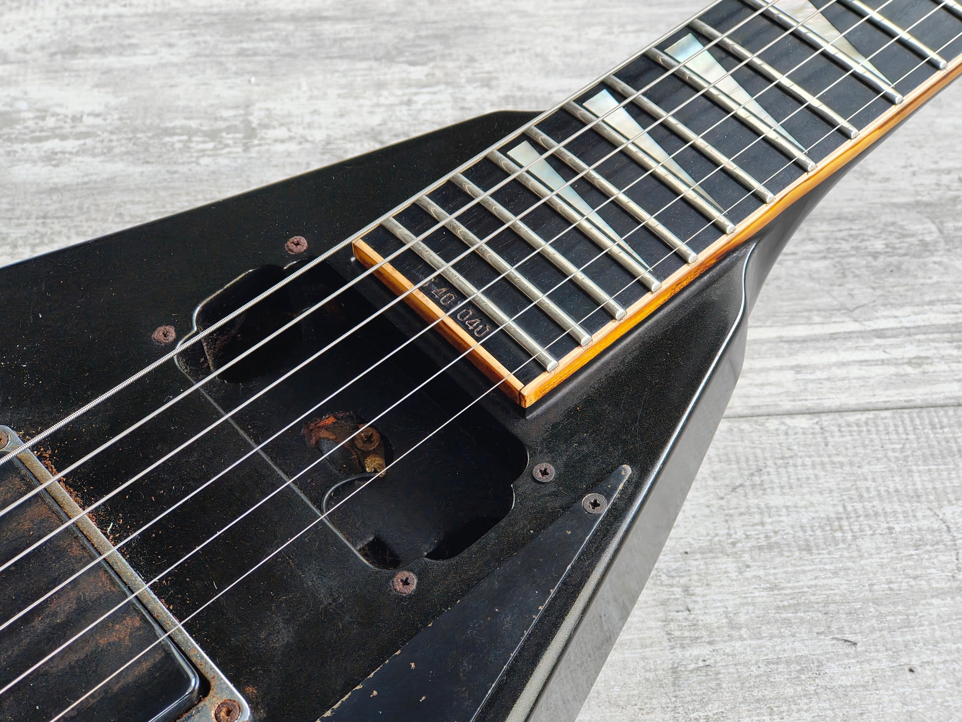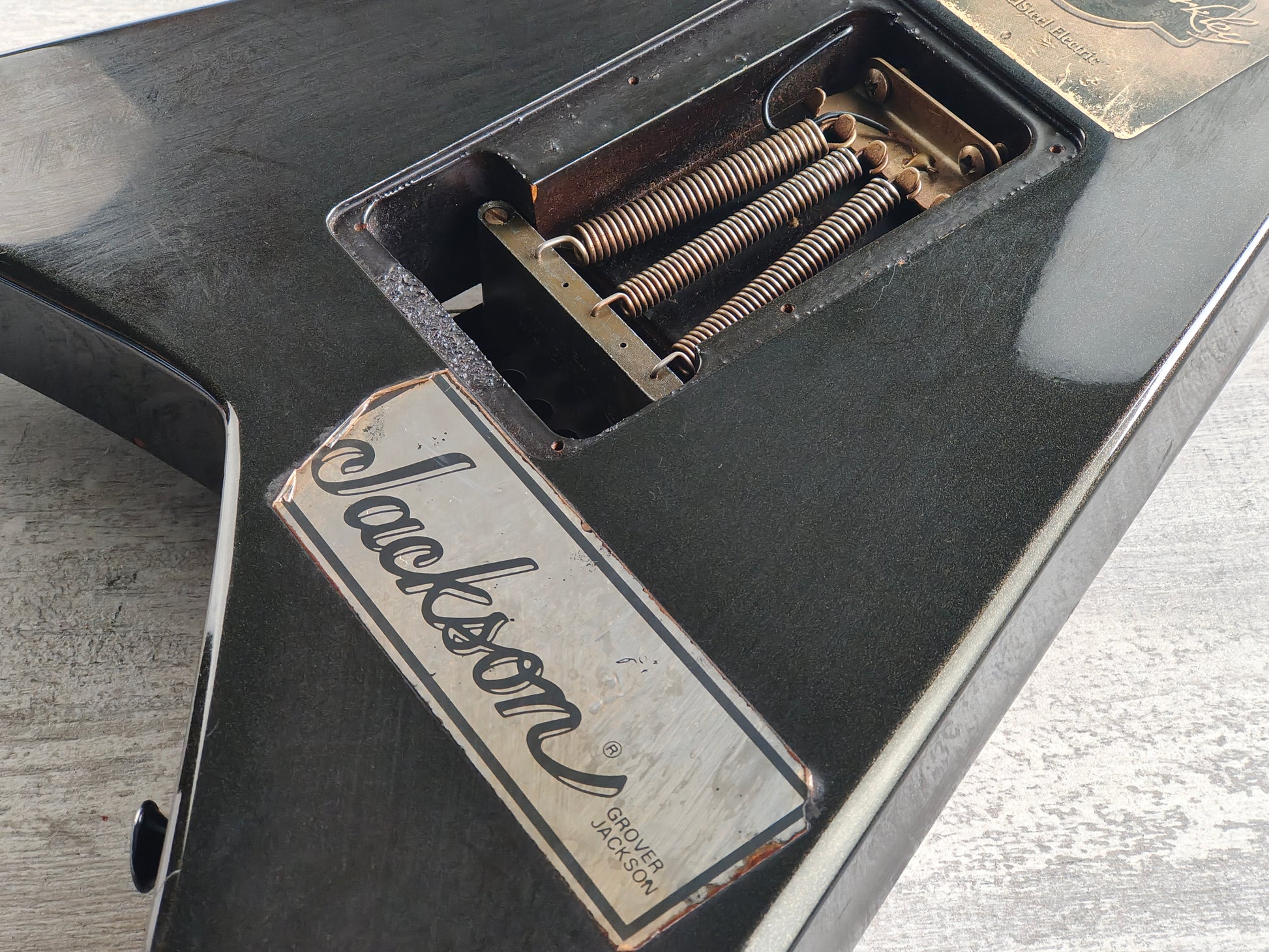 Made in Japan in the early 1990's, the "Delight E Rhoads" was one of the higher end offerings from the Jackson catalog and this one was loved for many years before arriving to us.
