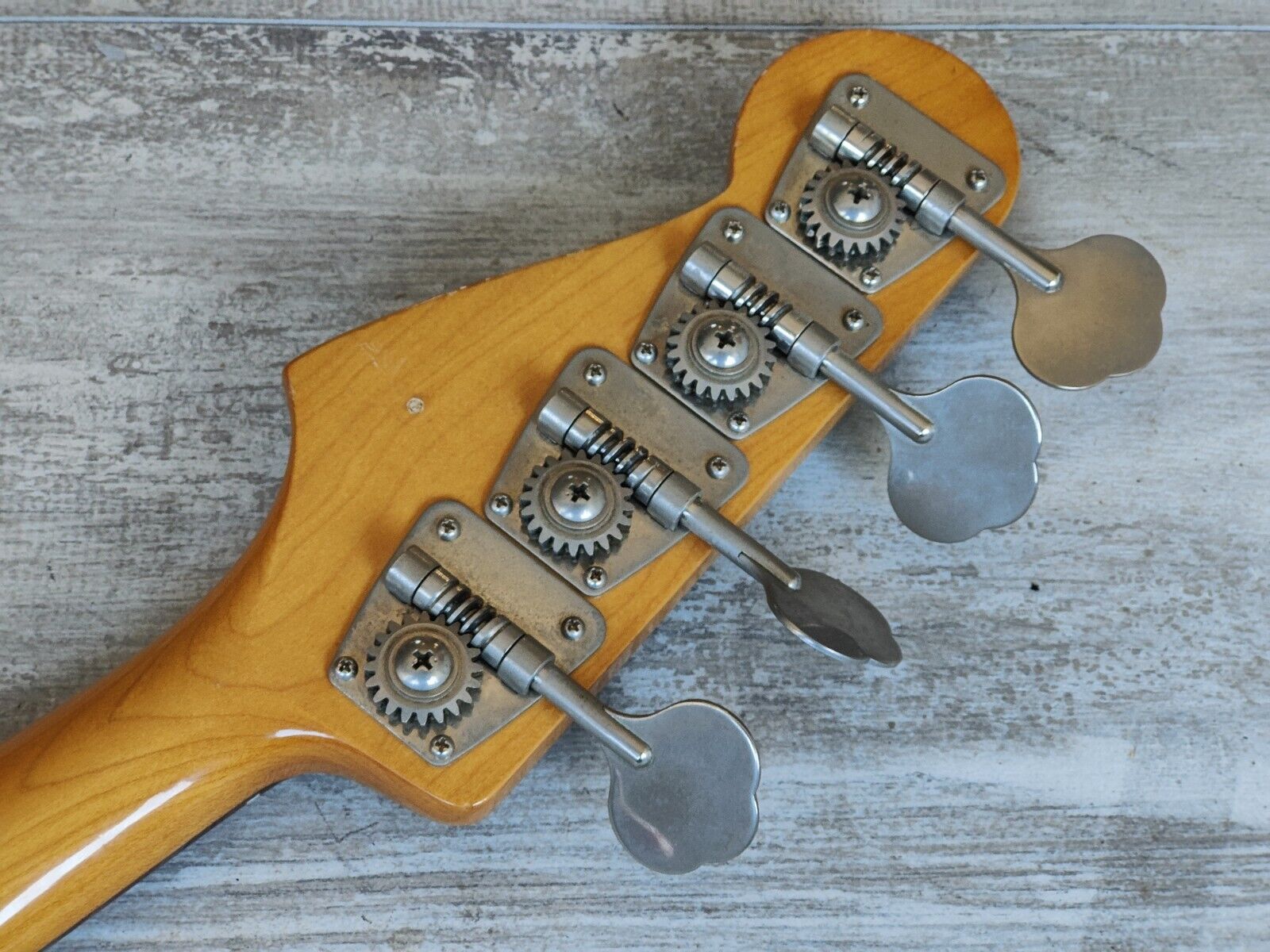 Built in 1992, this is Fender Japan's base model '62 Reissue Jazz Bass. Made in the Fujigen factory, it's a basswood body with a maple neck and slab rosewood fingerboard, weighs 4kg's. Appears to be all original with original Fender Japan JB-VINTAGE pickups.